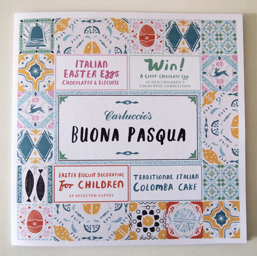 Spring is finally on the way! Debbie Powell was asked to illustrate Carluccio’s new menu, posters and packaging to celebrate all of the new delicious treats now in store for Easter time. Debbie decided to lino print instead of screen print these illustrations, and we think they’ve turned out beautifully! http://www.carluccios.com/