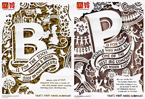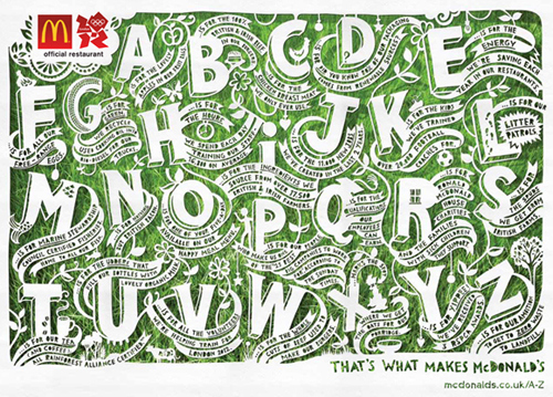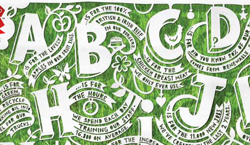 Kate Forrester has been kept busy working her way through the alphabet for McDonalds new advertising campaign. The brand asked Kate to create these beautiful illustrations that were to be based on a different letter of the alphabet, each of which stands for a different aspect of the brands ethics. As well as the ABC images Kate was also asked to design these huge illustrations to appear on the sides of the McDonalds lorries too – they’re the prettiest lorries we’ve seen around! Keep your eyes peeled for all of these adverts and many more to come.