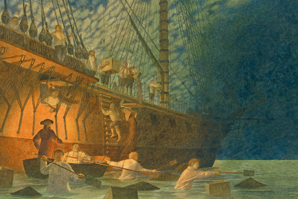 Malone’s distinctive watercolor paintings dramatize events in a series of beautifully composed tableaux, notable for their dramatic low-light effects and subtle shading. Informative and well documented, this handsome picture book offers a memorable account of the Boston Tea Party.
