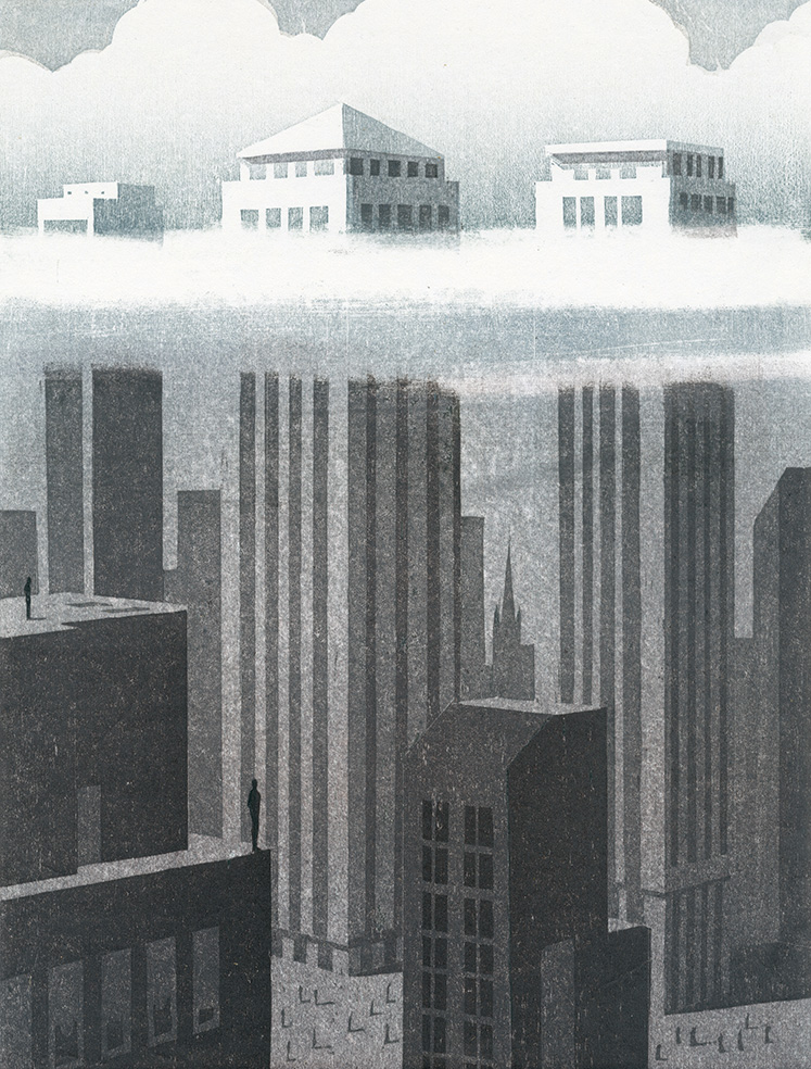 Andrew Davidson has created some stunning woodcuts over the years, and has recently been adding to his collection of woodcut artworks. Andrew’s woodcuts have a textural and grainy finish that is achieved through the printing process, this makes the images atmospheric and tactile. Andrew produces his hand crafted traditional woodcuts alongside his graphic, flat colour work and engravings.