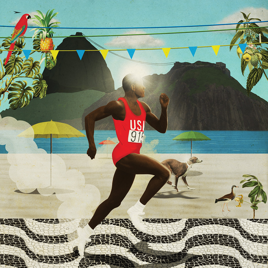 A wonderful new illustration from Laurindo Feliciano commissioned by Mendola’s for their 2016 calendar! Inspired by the next Olympics, Laurindo’s surrealist vision depicts a runner set against the Rio landscape and featuring aspects of Brazilian culture.