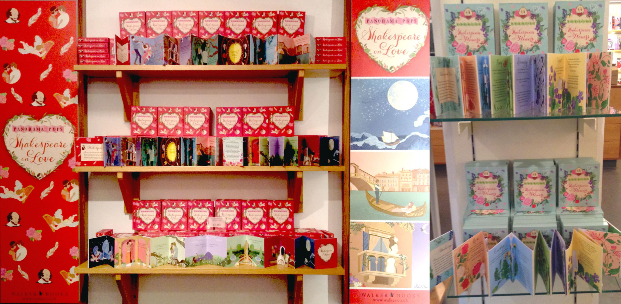 Dawn Cooper’s beautiful Shakespeare pop up concertinas made a beautiful display in the Shakespeare Book Shop as part of the 400 year anniversary celebrations. Dawn’s concertina book “Shakespeare on Flowers” has recently become available to buy. These lovely concertinas were published by Walker Books.