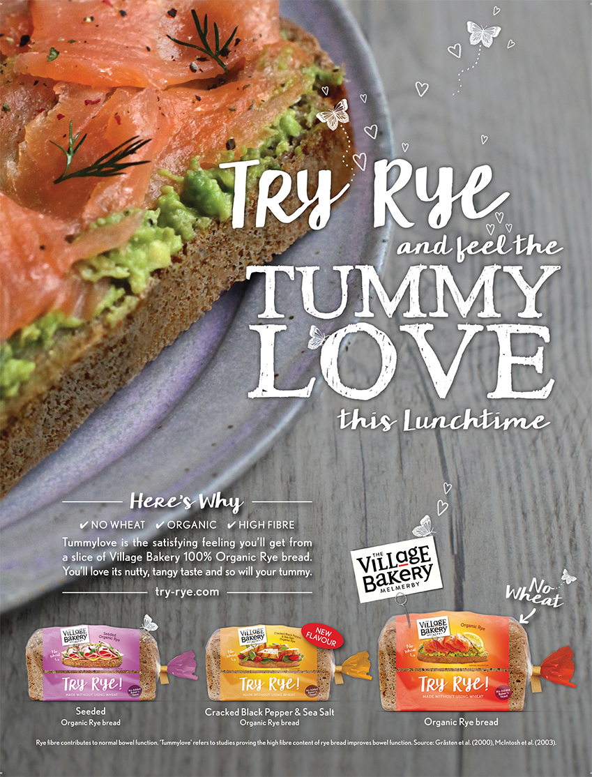 Lindsey Spinks was asked by Feel agency to create some illustrated flourishes to be used as an overlay for an advert published in Waitrose Kitchen for Village Bakery’s rye bread. The illustration was to be whimsical and contain a sprinkling of butterflies and frippery around the word tummy love. Lindsey created a few options with varying amounts of illustration and details and this is the final one they went with. We love the combination of Lindsey’s illustrations alongside the photography to create this advert.