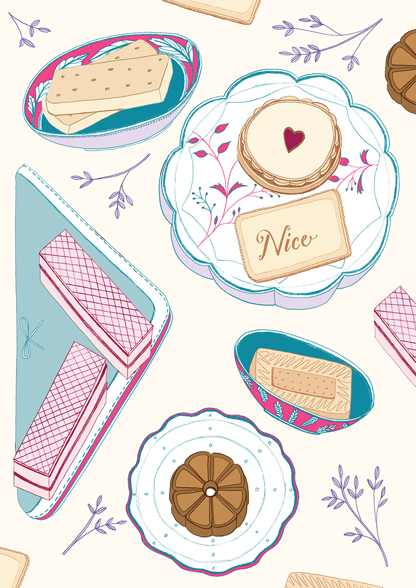 As the excitement builds for this evenings episode of The great British Bake Off, Lindsey Spinks has treated us to a scrumptious ‘bake off ‘ inspired illustration, based on this weeks cooking theme ‘biscuit week’!