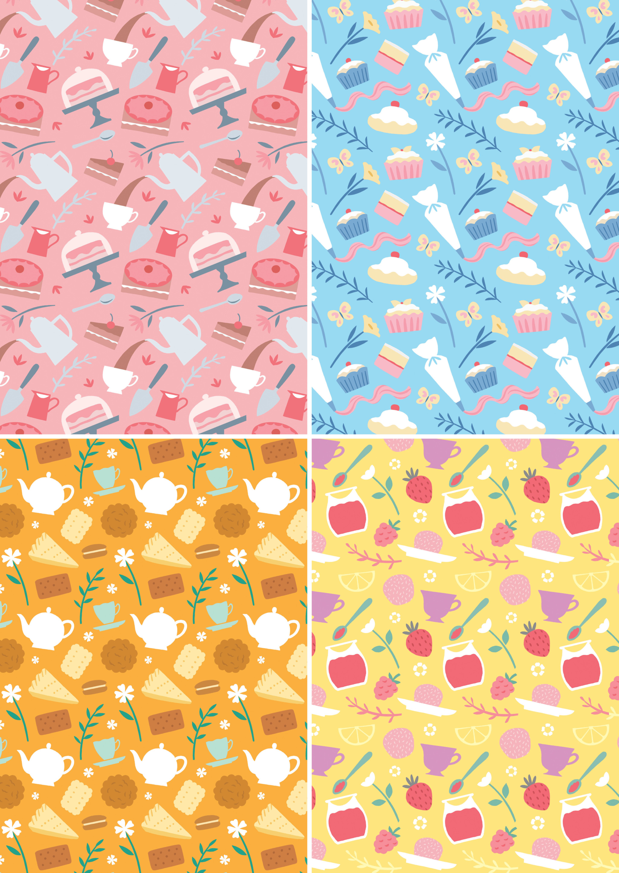 Lucy Davey worked with Hamill Bosket Design on a set of repeat patterns for the Howell’s cake and biscuit range. The Northern Irish company Irwin’s bakery commissioned her to create a set of afternoon tea themed patterns. We love Lucy’s sweet and scrumptious designs!