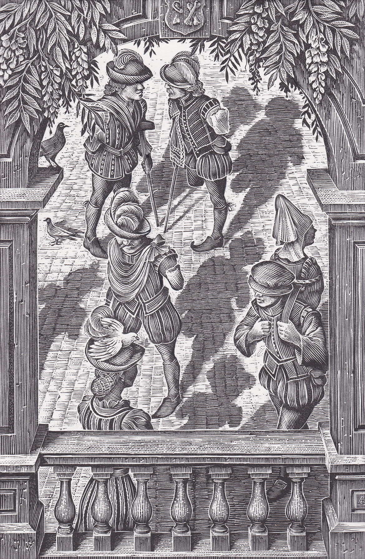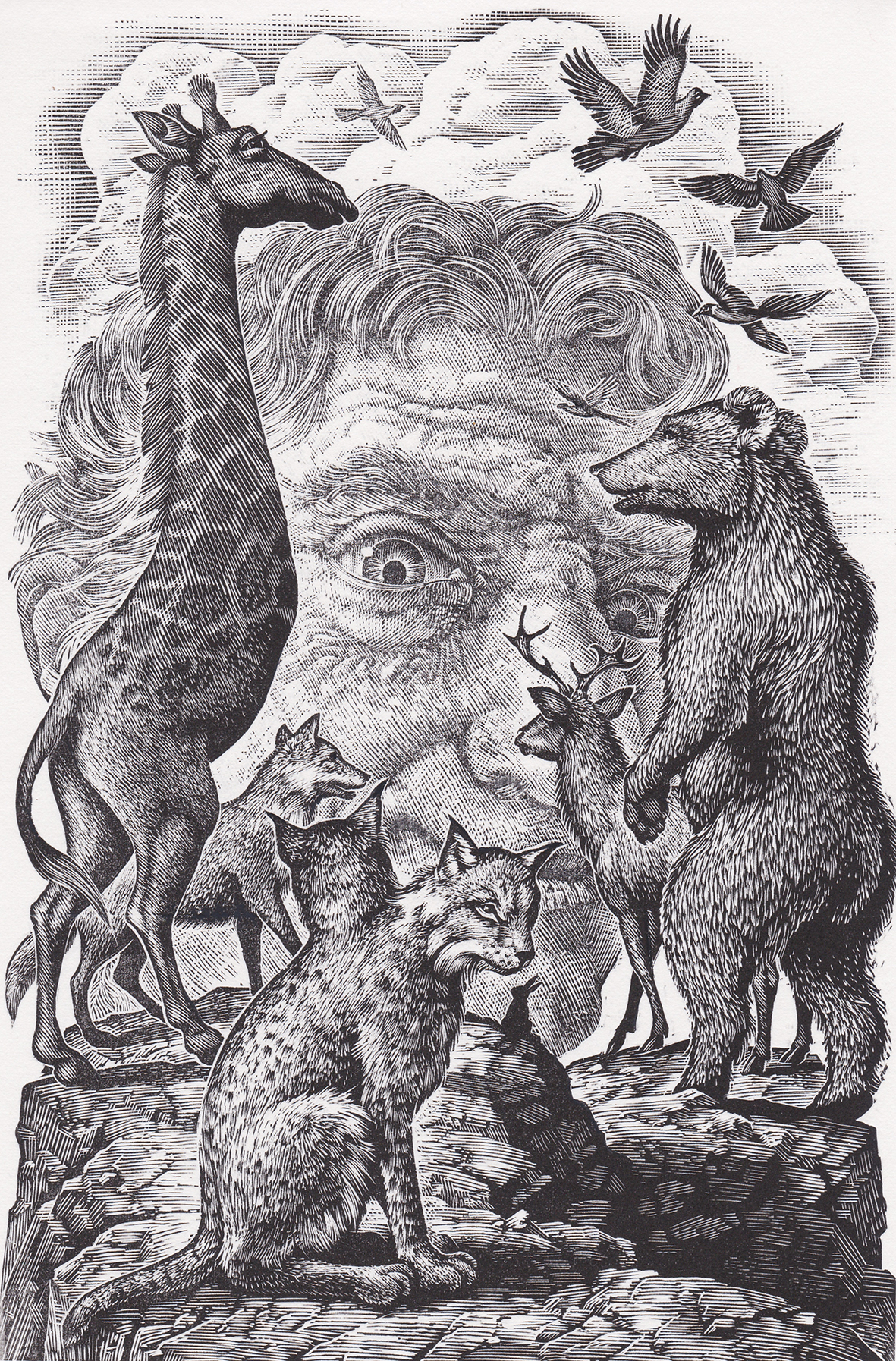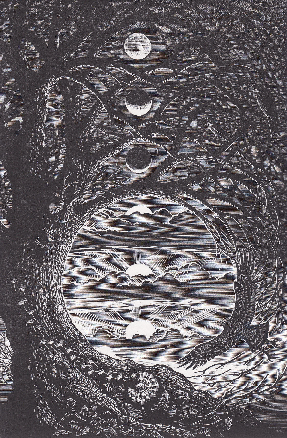 Within the collection of 10 thrilling fairytales, each one is accompanied by one of Andrew’s exquisite engravings. They are all brought together beautifully packaged by the golden cover illustration, which weaves into it’s intricate design hints to the some of the tales lying beneath…