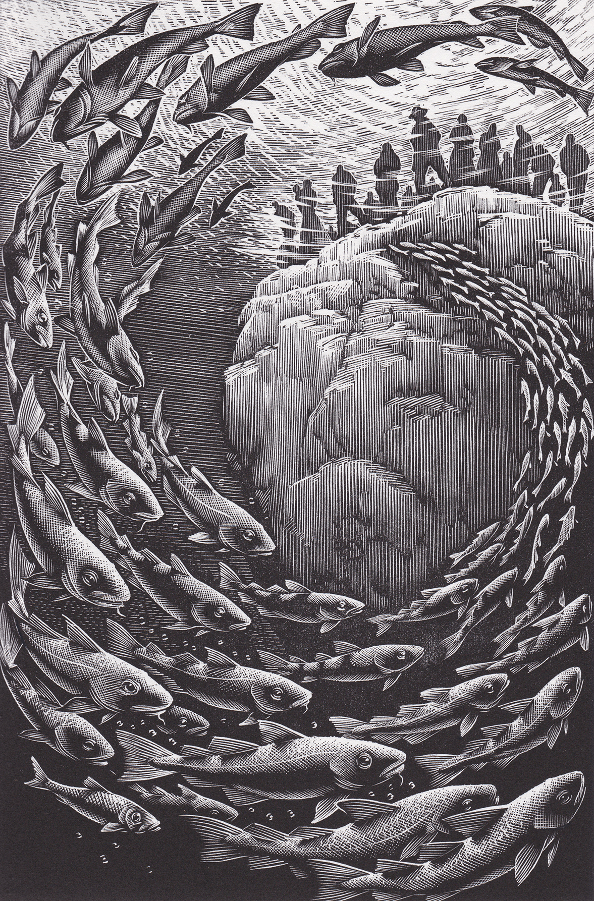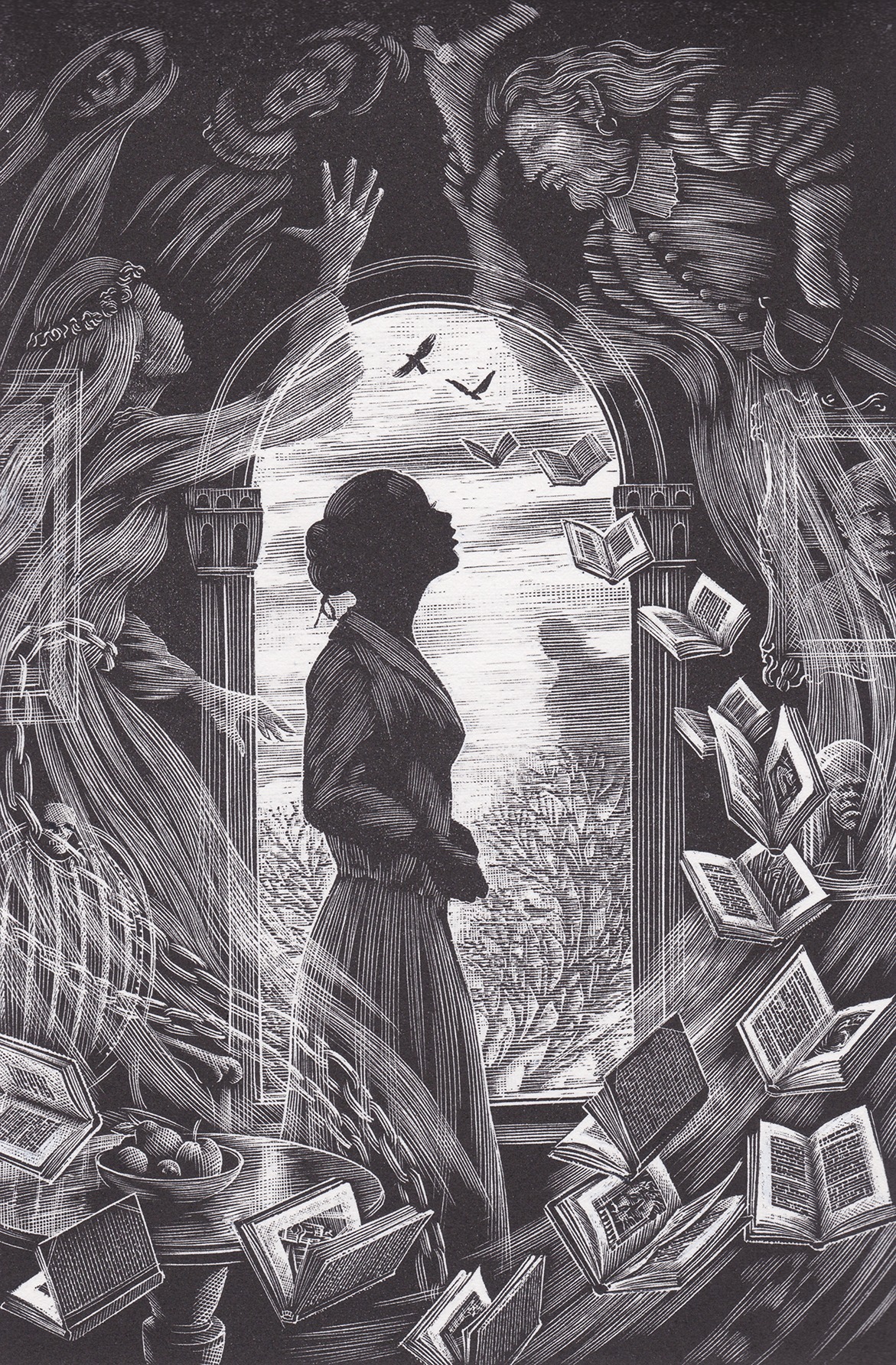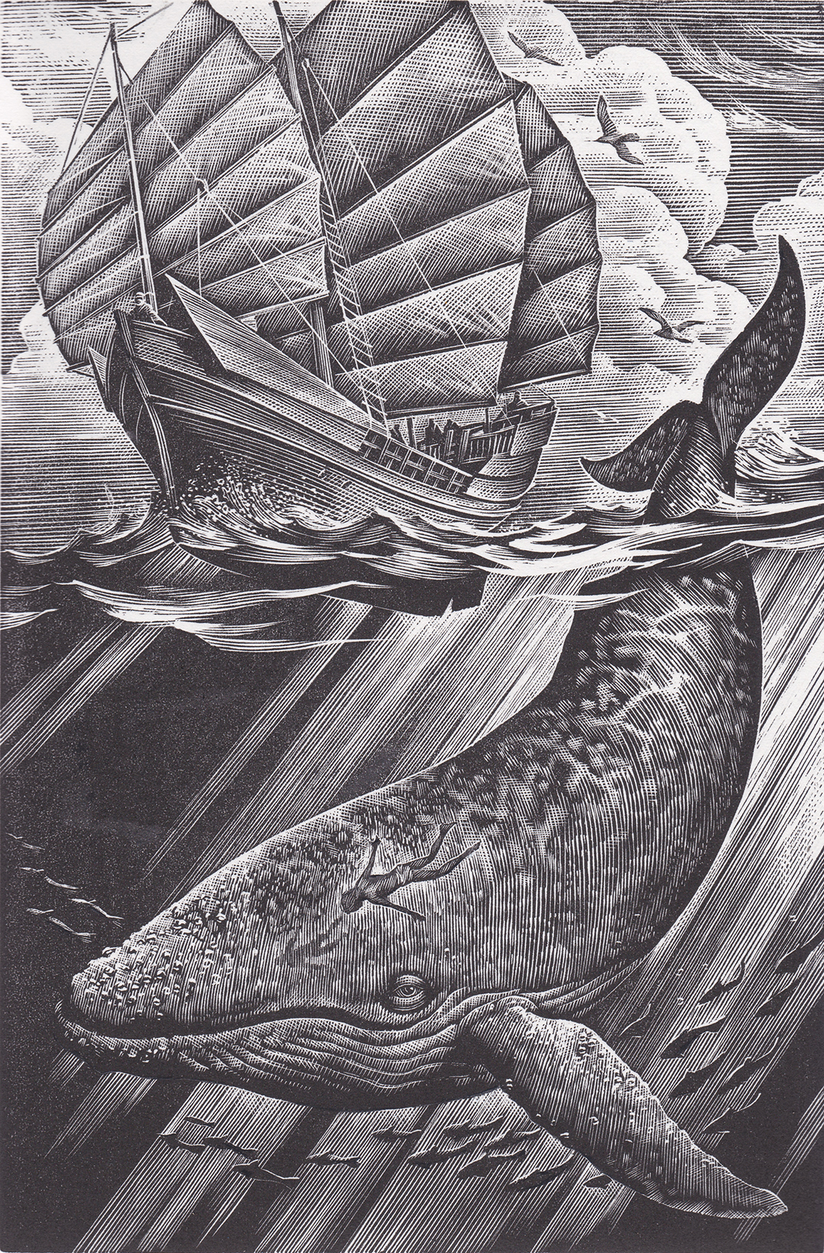 Within the collection of 10 thrilling fairytales, each one is accompanied by one of Andrew’s exquisite engravings. They are all brought together beautifully packaged by the golden cover illustration, which weaves into it’s intricate design hints to the some of the tales lying beneath…