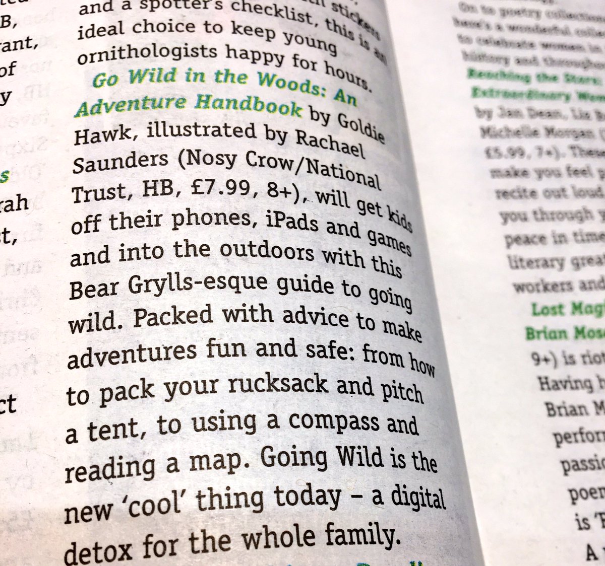 It has been wonderful to see Rachael Saunders’ book, ‘Go Wild in the Woods’ featured in The Guardian’s Independent Bookshop Week as one of their ‘Best New Children’s Books’ for summer 2017′! Well done Rachael!