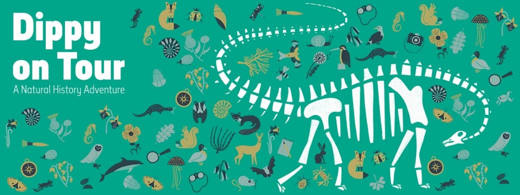 The famous and much loved diplodocus -‘Dippy’ from the Natural History Museum is going on tour! Debbie Powell has been busy creating illustrations to advertise Dippy’s tour. You can see Debbie’s beautiful illustrations of Dippy and other creatures and scientific artefacts on posters promoting Dippy’s tour and follow the hashtag #DippyOnTour to follow his journey.