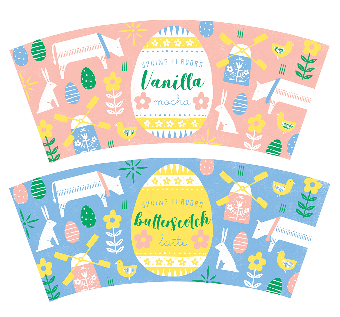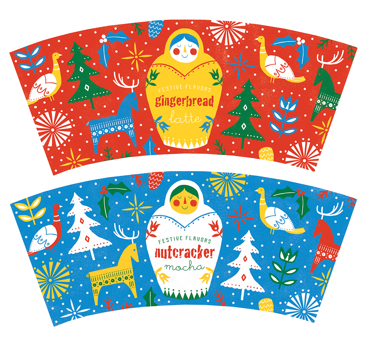Rachael Saunders has recently been exploring the theme of coffee in a set of new and striking packaging designs. She set herself this challenge to help develop her graphic style, use of typography and the use of limited colour palettes. Bold shapes and patterns have always been a strong feature in Rachael’s work and it is clear to see that she has enjoyed working on these beautiful pieces.