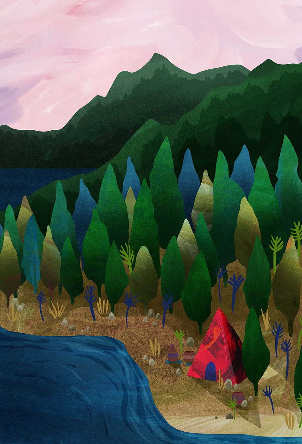 We are thrilled to welcome the very talented Amy Grimes to The Artworks team. Amy’s bright and bold illustrations are inspired by nature and often feature botanical motifs and leafy landscapes. Amy’s work is mainly created digitally, using a variety of hand-painted textures, which are scanned and assembled in Photoshop into digital collages.