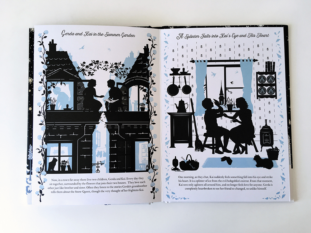 “After creating a self-initiated miniature hand clothbound concertina of Alice’s Adventures in Wonderland, Orchard Books (Hachette) commissioned me to illustrate a larger gift edition of Hans Christian Andersen’s The Snow Queen.