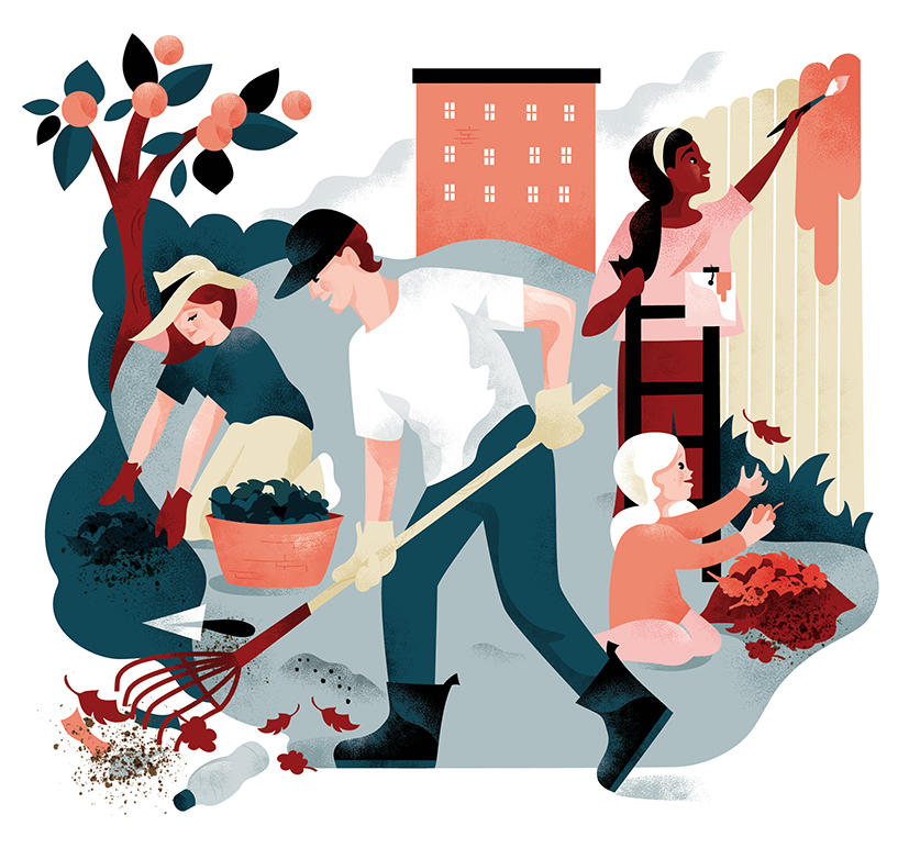 Our dynamic illustrating duo, Darling Clementine, have created a set of editorial illustrations for real estate magazine, OBOS. Darling Clementine have illustrated for OBOS for several years – using their original style to convey topics on housing, economics and the social benefits of shared-living spaces.