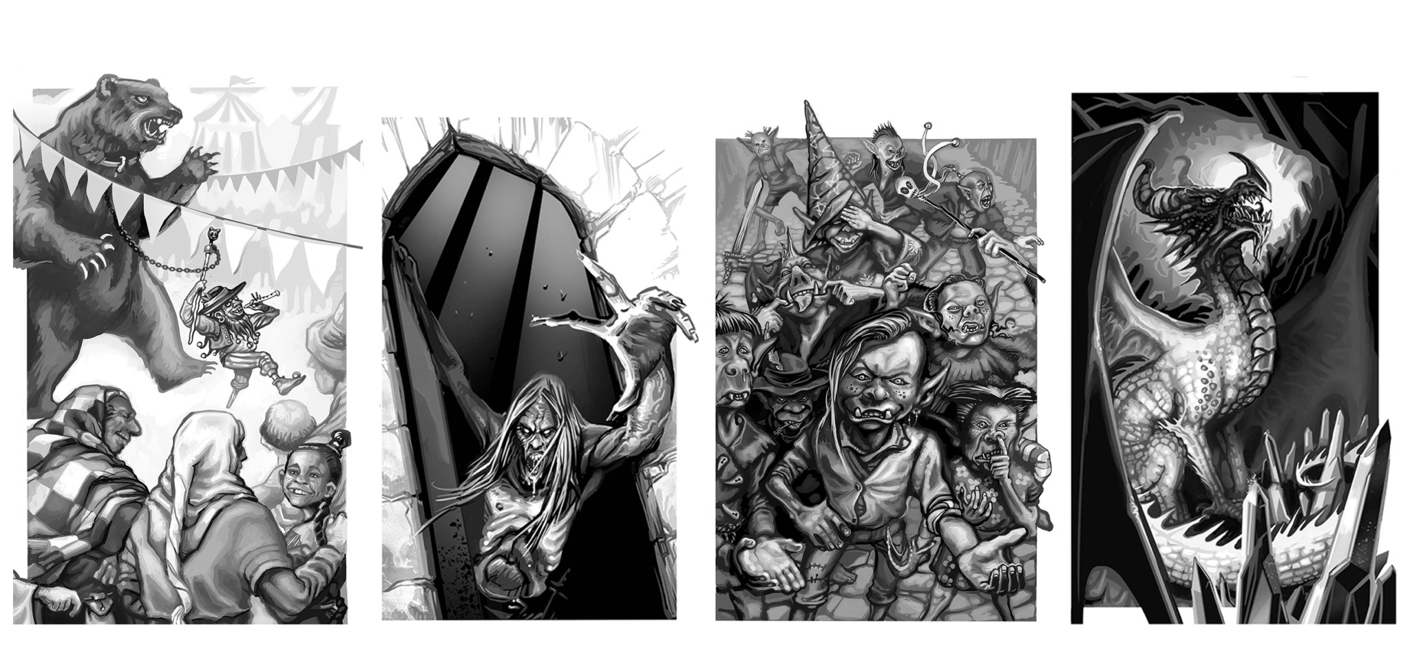 This September, Scholastic released new editions in the cult ‘game-in-a-book’ series, Fighting Fantasy. Rob Ball has been producing artwork for the Fighting Fantasy covers for a number of years, but this the first time he has produced the interior illustrations as well.
