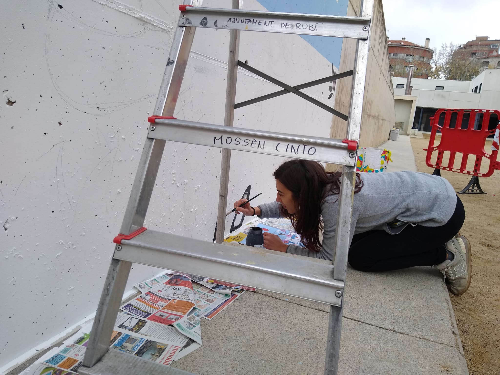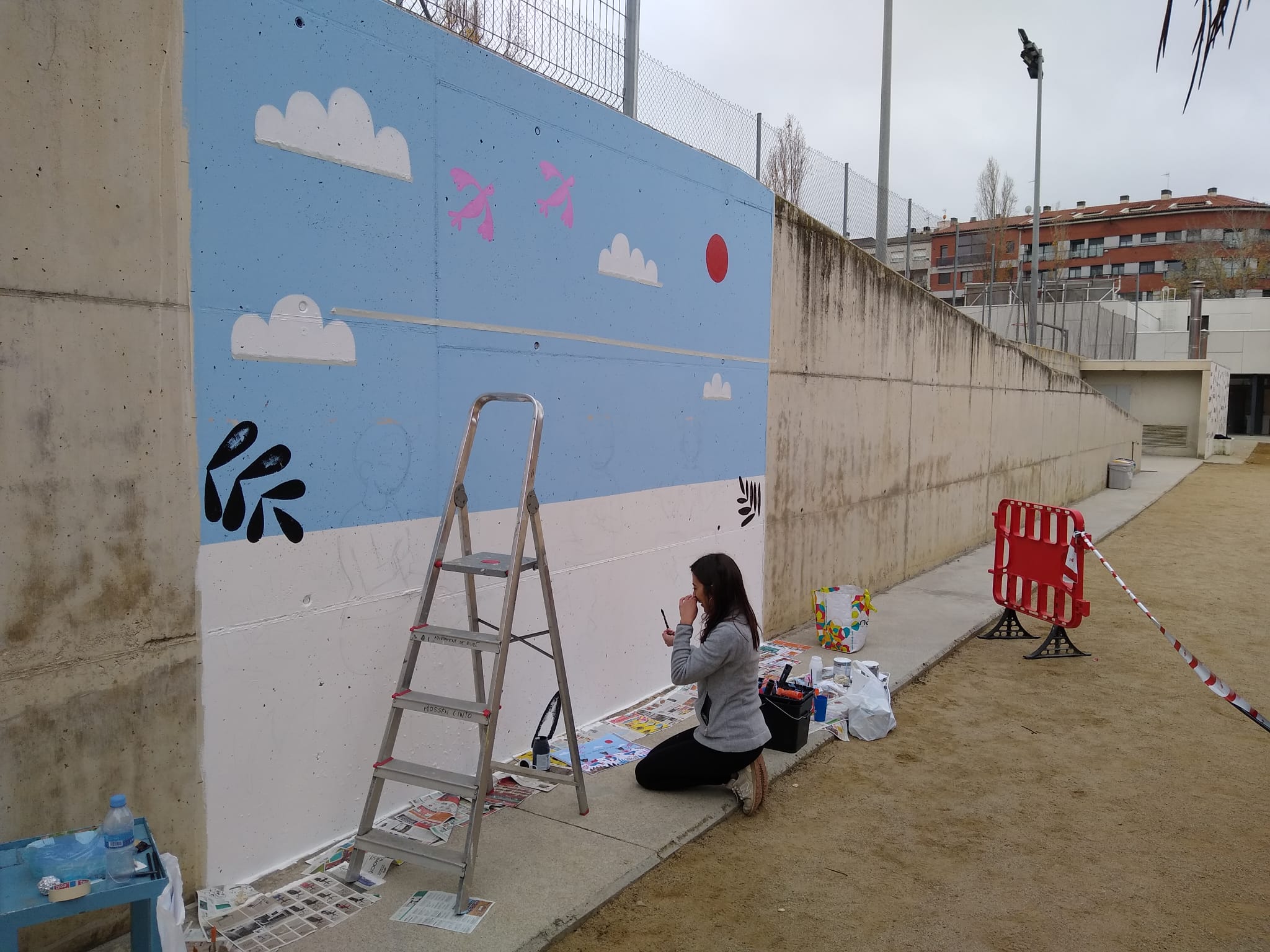 Once the school approved the sketch, Dàlia prepared the necessary materials for the mural. “I worked on it for 3 days, painting live on the playground. It was the funniest part but also the most difficult. It’s complicated to transfer an illustration into a 4m x 3m mural, and working vertically outdoors. But having the curious children around making comments, questions and congratulating me was very rewarding!”