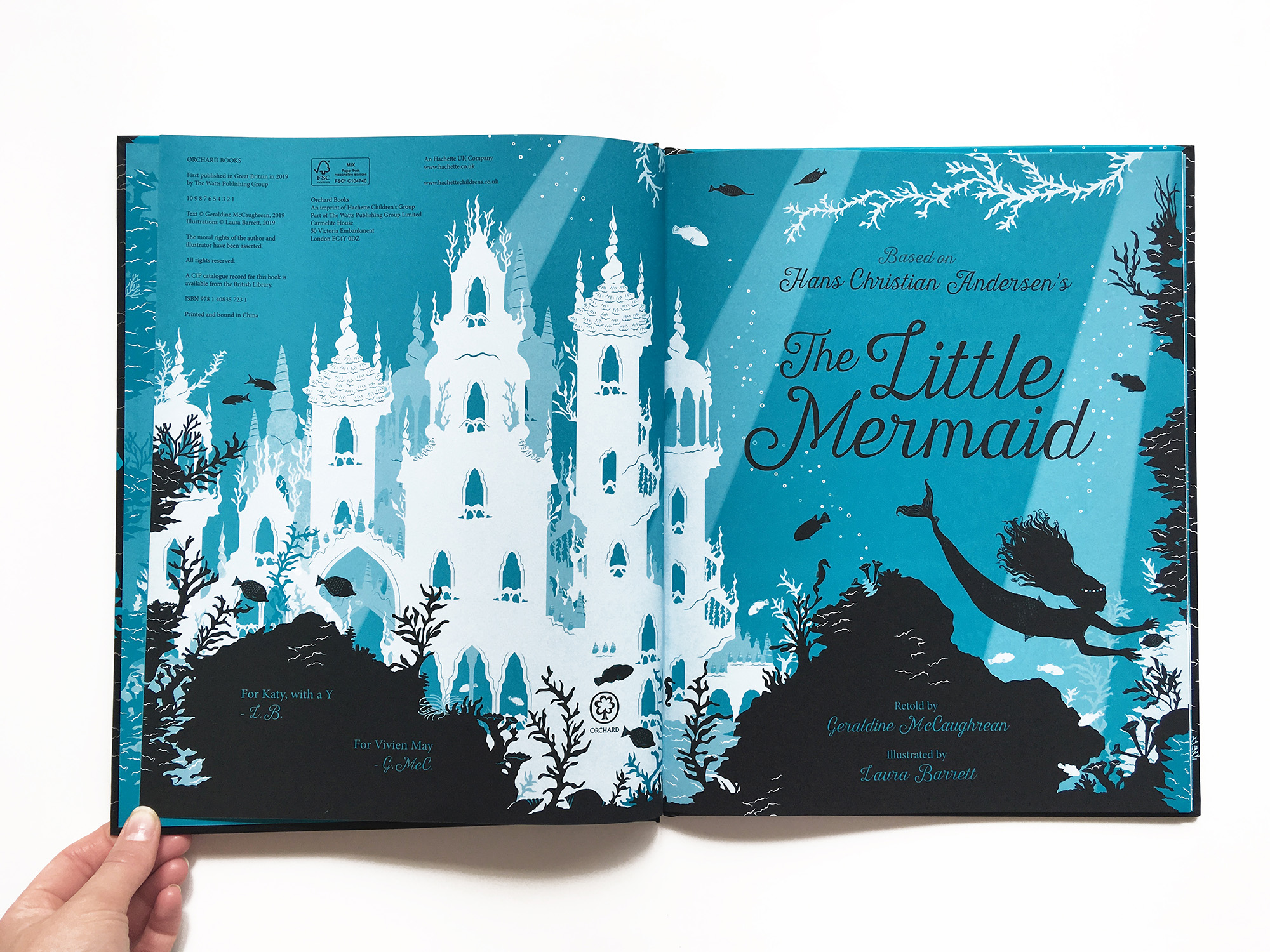 Laura Barrett’s illustrated version of the classic Hans Christian Andersen tale “The Little Mermaid” has just been released in paperback, with words by the wonderful Geraldine McCaughrean and published by Orchard Books.