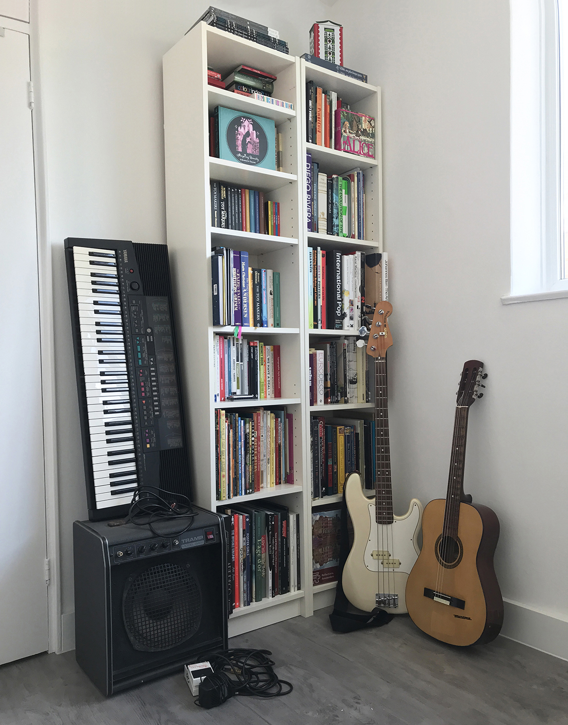 I use the spare room of the flat that I share with my boyfriend as a studio, combined with his music room. I love the lack of commute and having a creative space to call my (our) own.