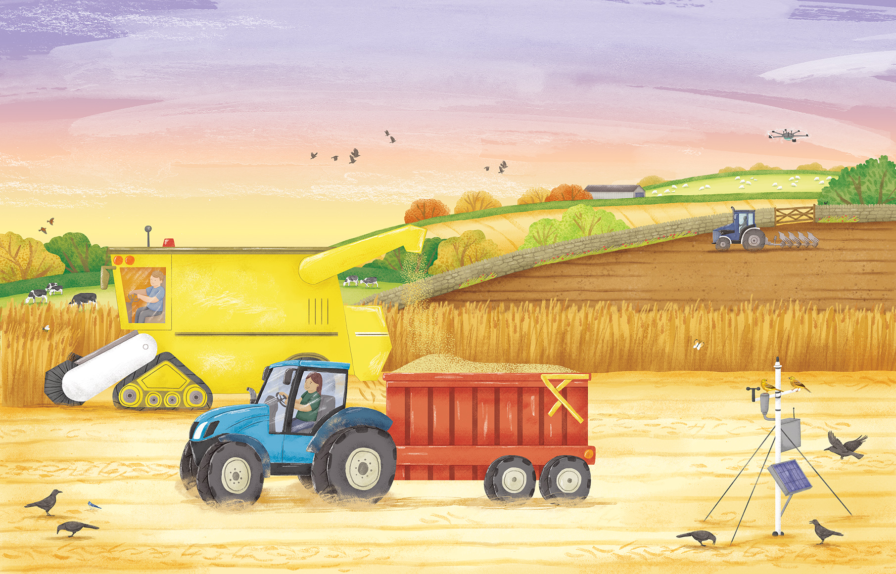 Rachael’s lush scenes are teeming with all the action of a modern farm, from harvesters to drones and of course Rachaels signature animals!