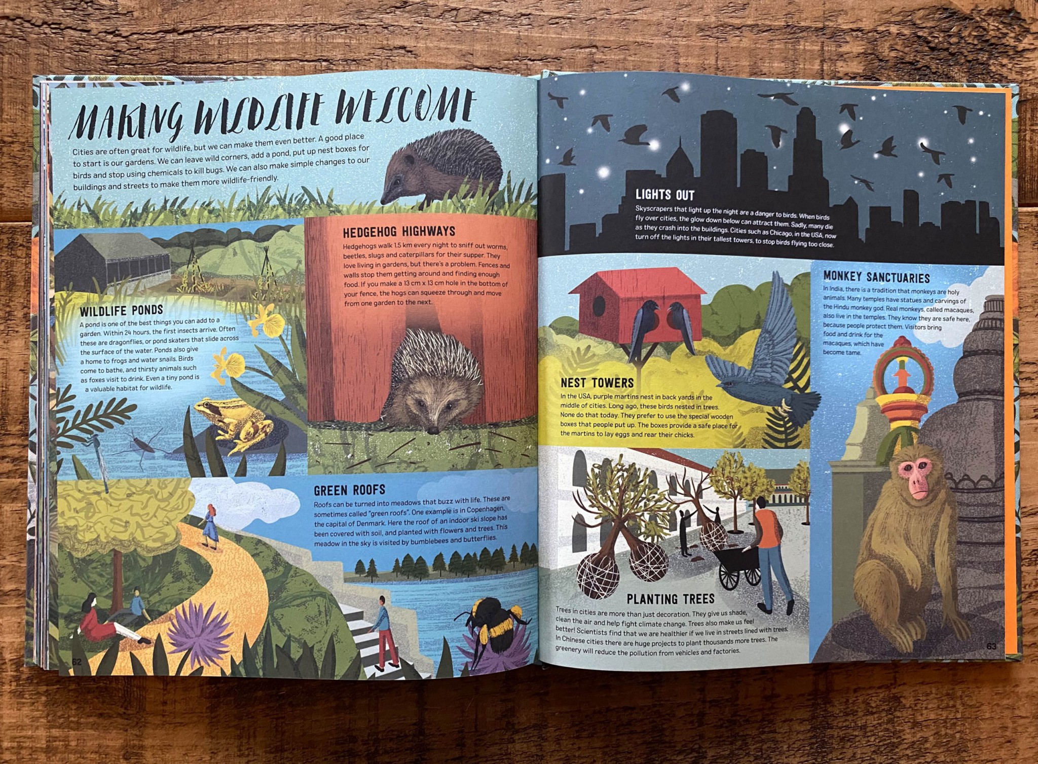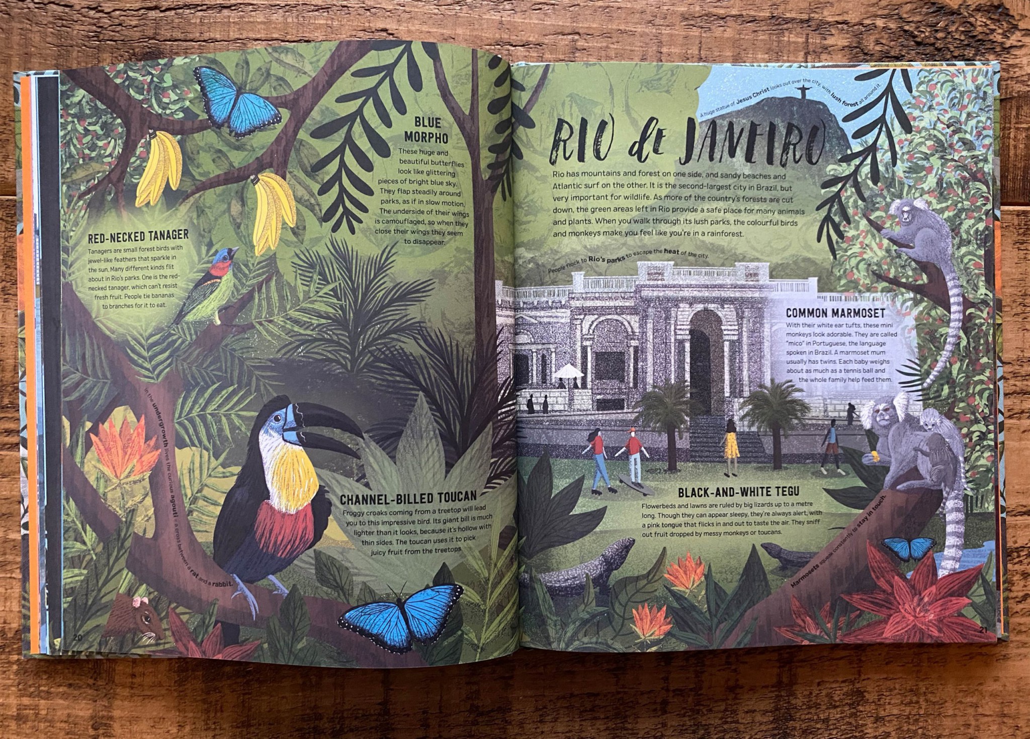 Lucy Rose has fully illustrated Wild City, which is out now via Macmillan Kids! An exploration of cities around the world and the creatures we share them with, Wild City is written by award winning natural history author Ben Hoare. The book delves into the unexpected kinds of flora and fauna we find in urban spaces across the globe.