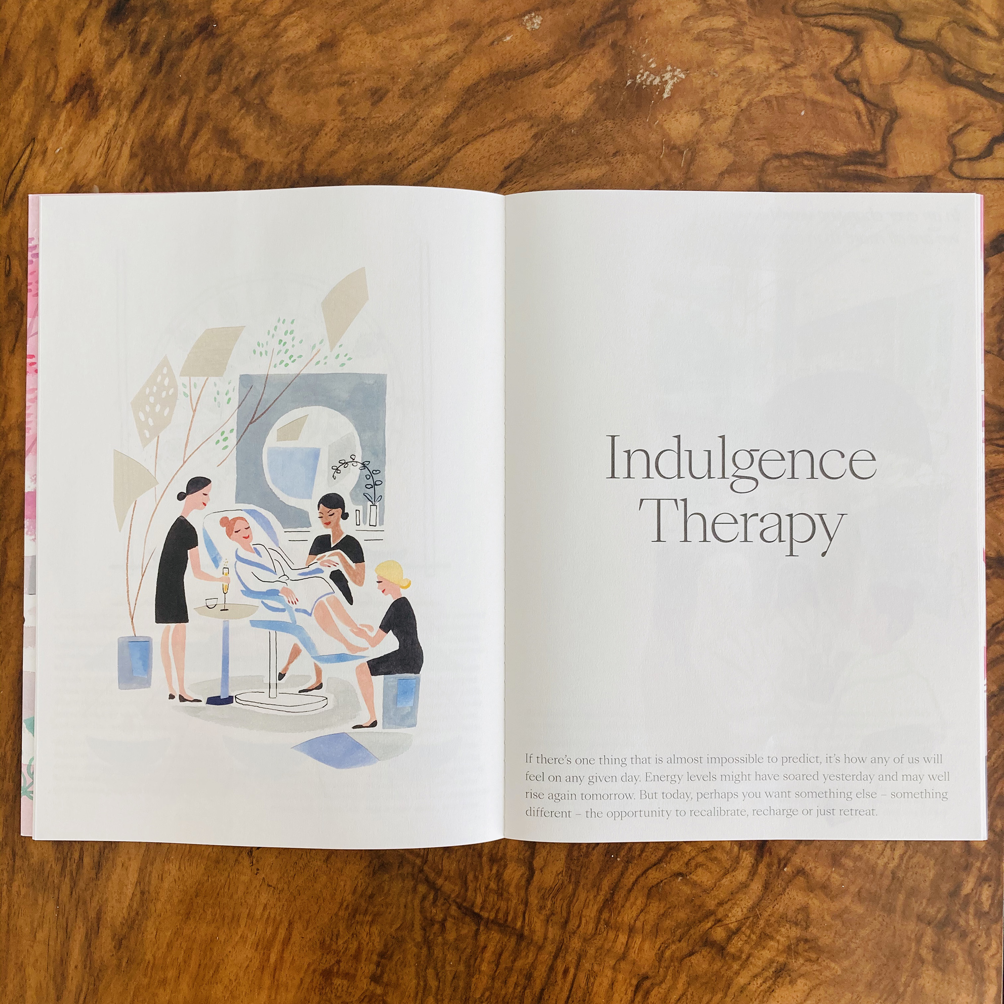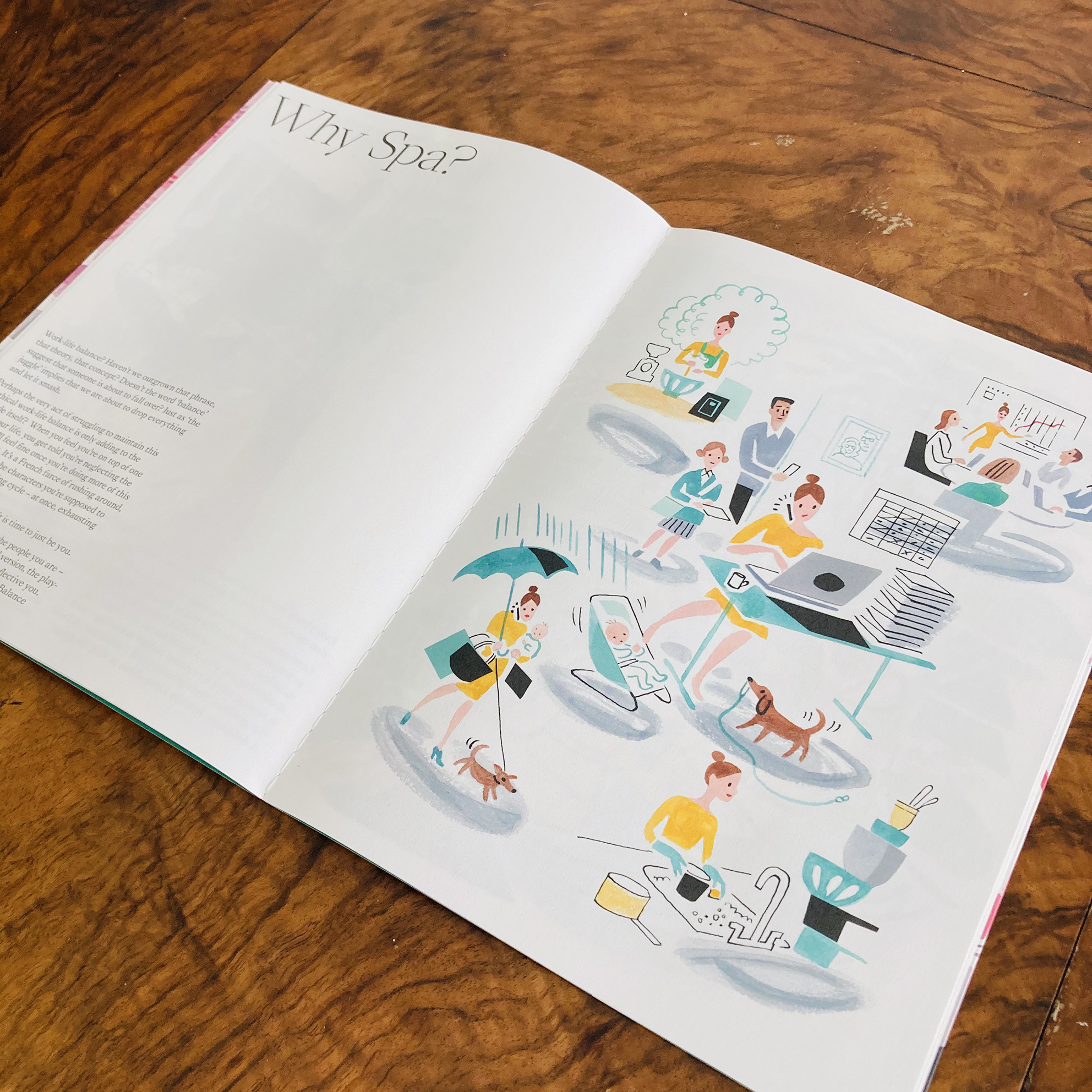 Commissioned by high end branding agency Luxury Branding, Sarah has created quirky, attractive and evocative illustrations that are both fun and reminiscent of the relaxing atmosphere of the spa. Launched in anticipation of the opening date, Sarah worked from architectural renderings to help create her take on the space, combining the references with her own imagined scenes of a spa day.