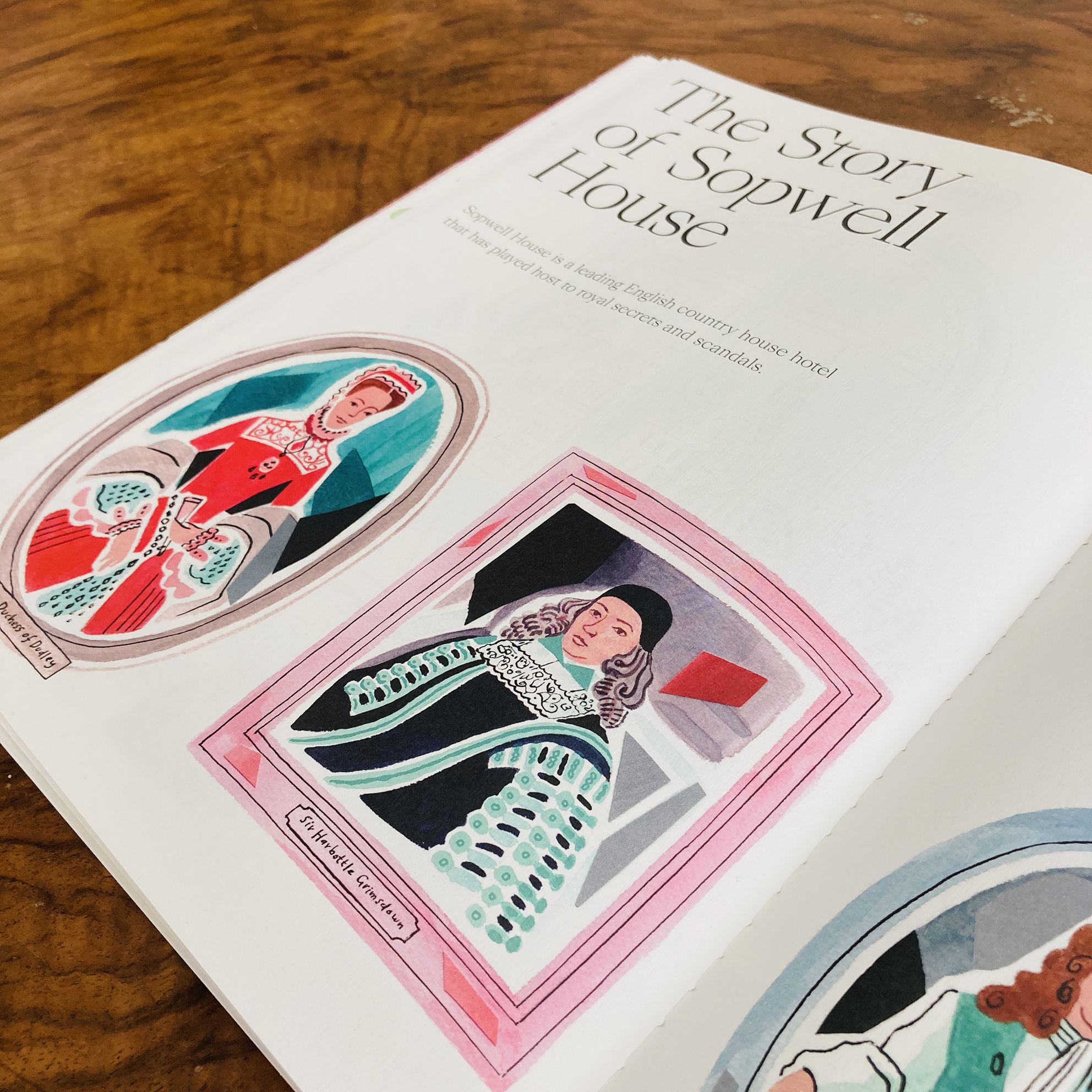 Obviously, first hand research was needed, so Sarah took a trip to Sopwell House (the hotel that houses Cottonmill Spa), soaking up the atmosphere of the hotel for inspiration, “…it was also fun to work on scenes of glamorous people socialising in beautiful surroundings!”