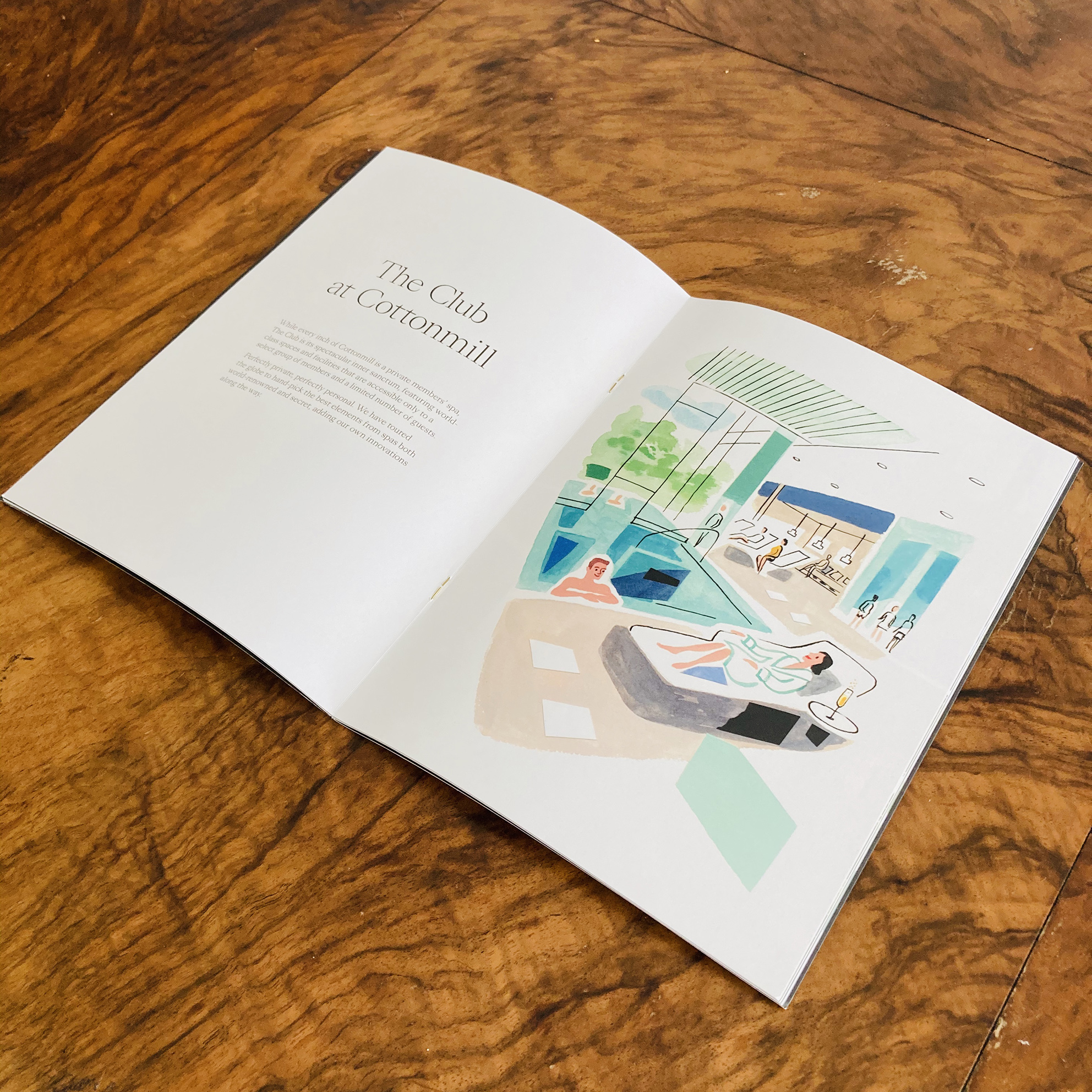 Sarah McMenemy has created illustrations for luxury spa Cottonmill, featured across a range of promotional and branding materials, elevating the brochures with beautiful wrap around covers, and used heavily across the website and other promotional material.