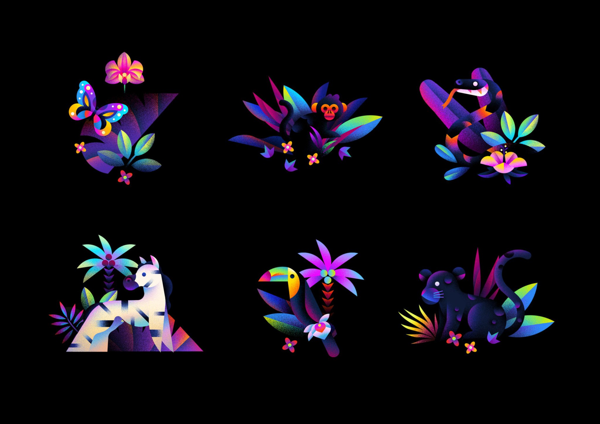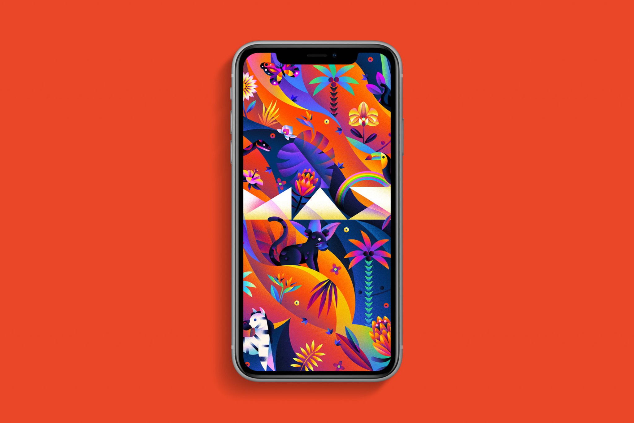 Using Adobe Photoshop, Catherine’s “Neon Jungle” artworks have a dreamlike atmosphere filled with colourful, shy creatures, surrounded by vivid tropical plants! They’re guaranteed to make your phone or tablet feel exotic!