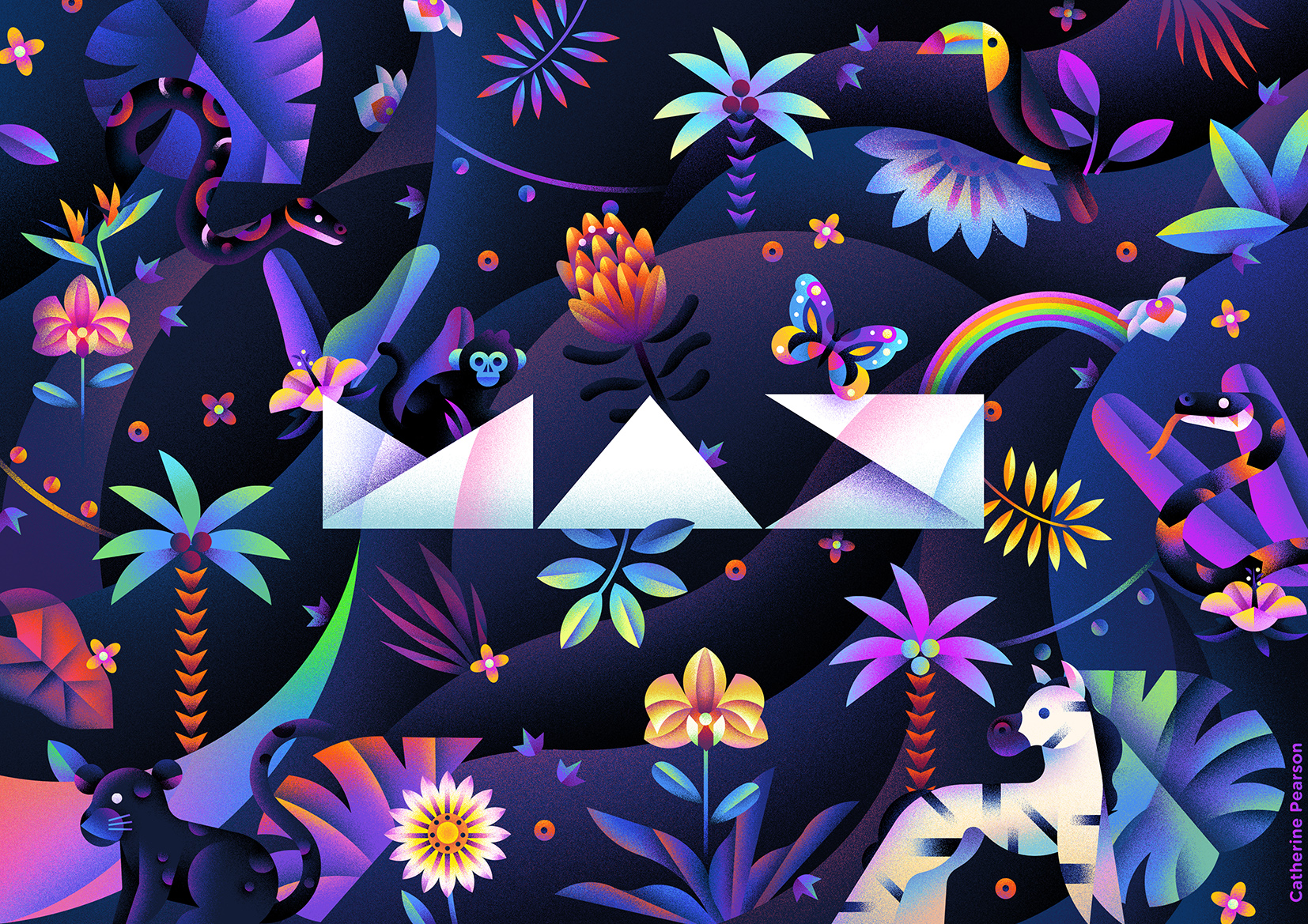 Catherine Pearson was commissioned as part of this years Adobe MAX virtual event to create two downloadable wallpapers for attendees, as part of the CoCreate: Max illustration team.