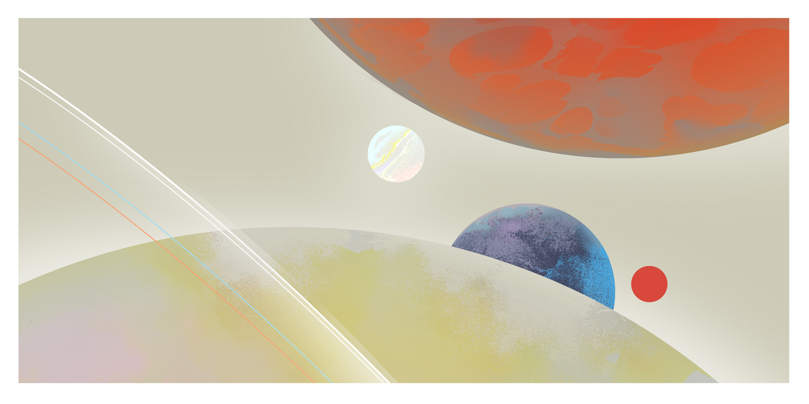 Rob Ball has created some space-age visuals for venture capitalist firm Moonfire. Approached by Richard Chapman Studio, Rob has created ambient illustrations of planet surfaces, distant stars and some graphic portraits for the businesses across Moonfire’s portfolio.
