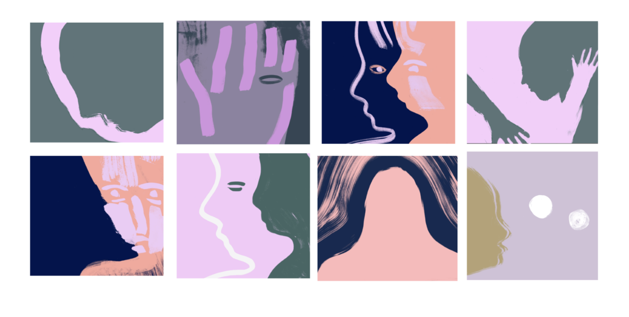 The album artwork carries forward the practical application of concept as well; the image explores shapes and compositions of people embracing, contacting one another. The “contact” also alludes to the physical components of printmaking used to create the artwork, with the final image being made with mono-printing.