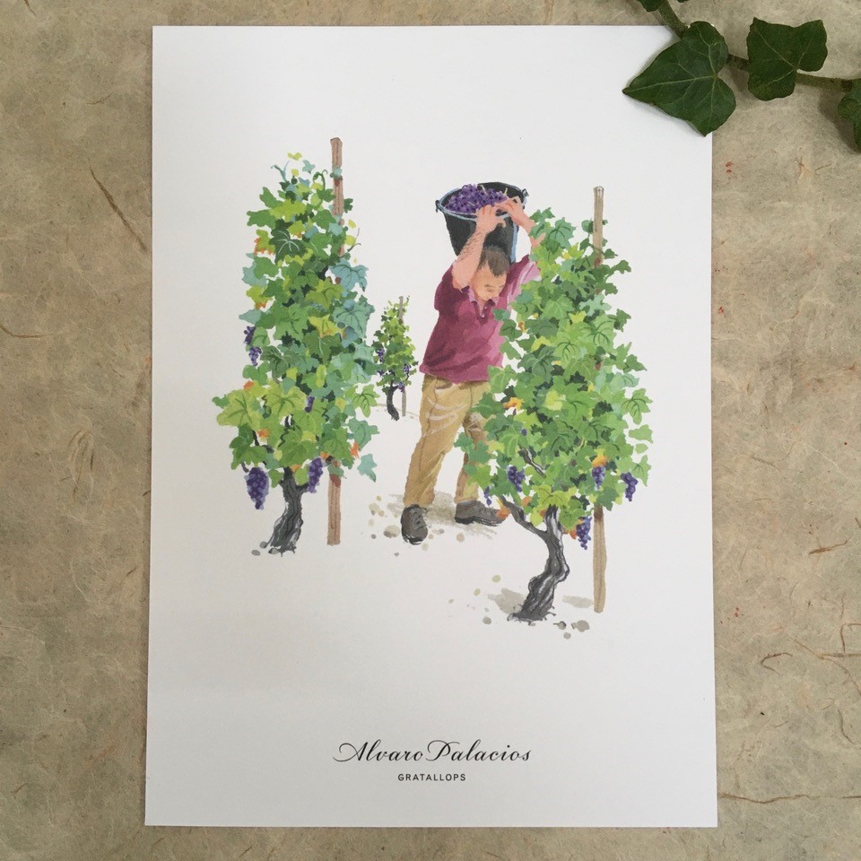 Mary Woodin was commissioned to illustrate the 2020 Christmas cards for Spanish winery Alvaro Palacios, highlighting the commitment and expertise of the people who work in the vineyards;