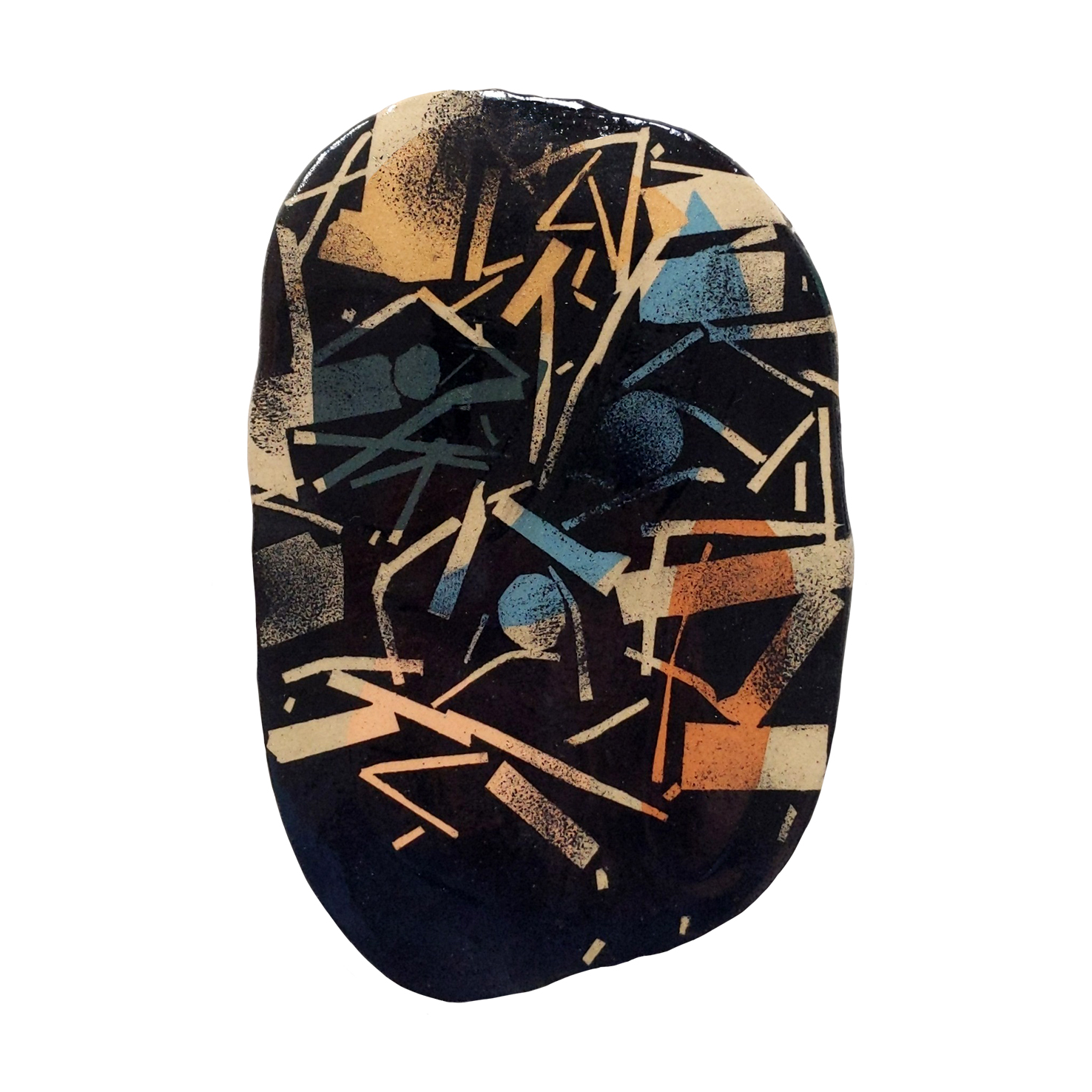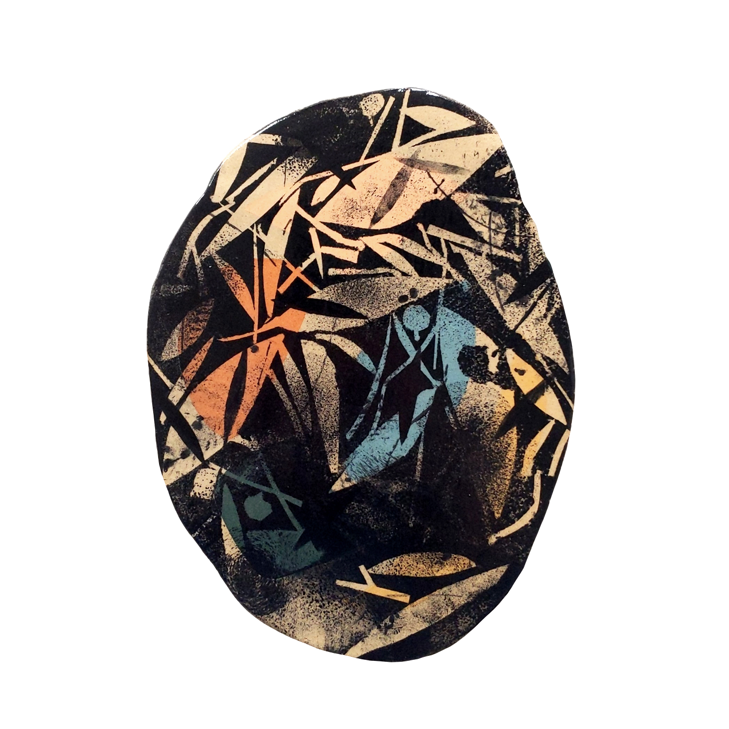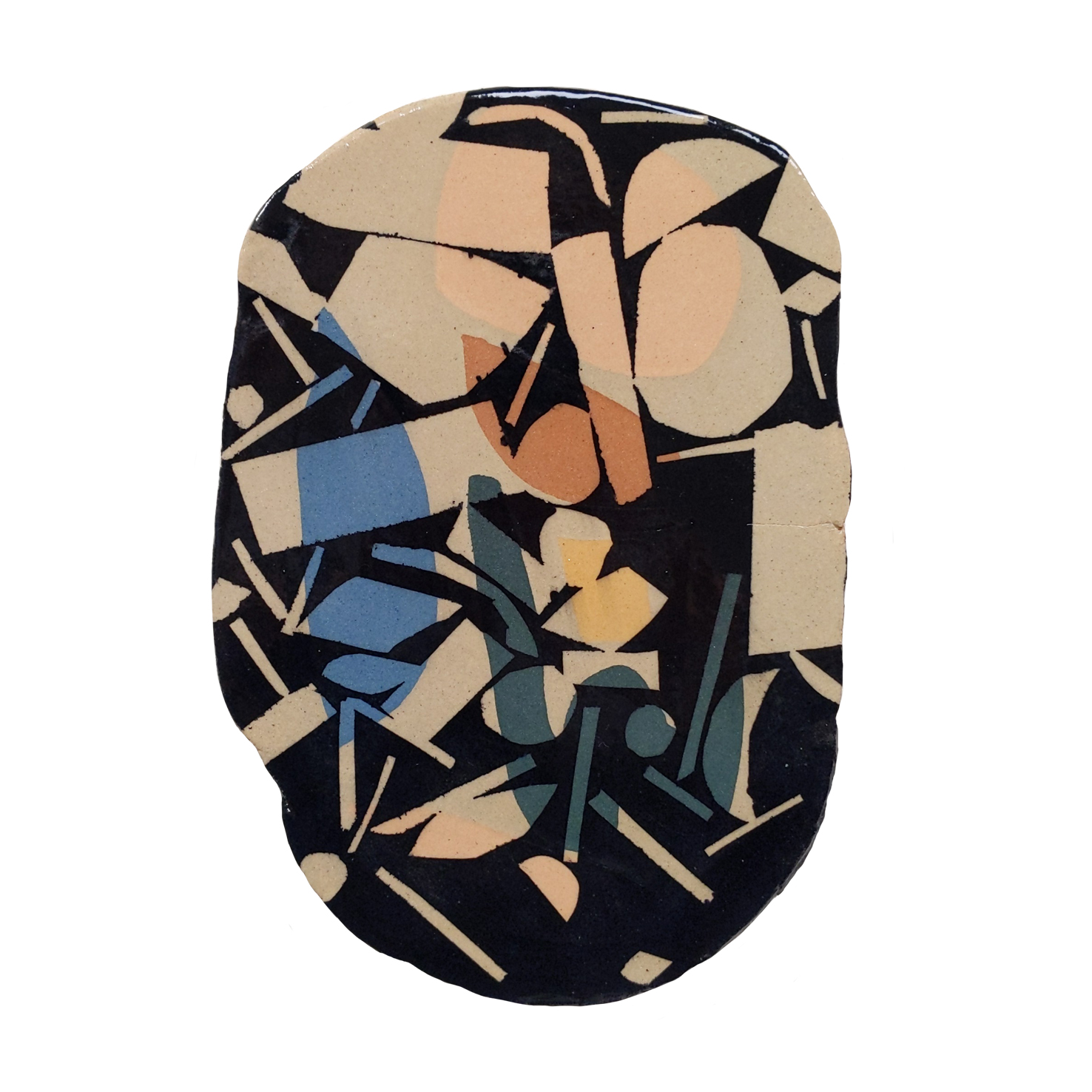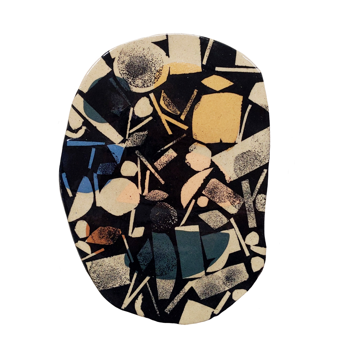 The process starts with Lydia using stained clays to inlay coloured shapes into the stoneware tiles. Once the tiles have been dried and bisque fired they are dropped off at Claire’s doorstep for further decoration! Using underglazes she then brushes, masks out areas and prints onto the tiles. The tiles are then returned to Lydia, glazed and fired in the Kiln for the final time.
