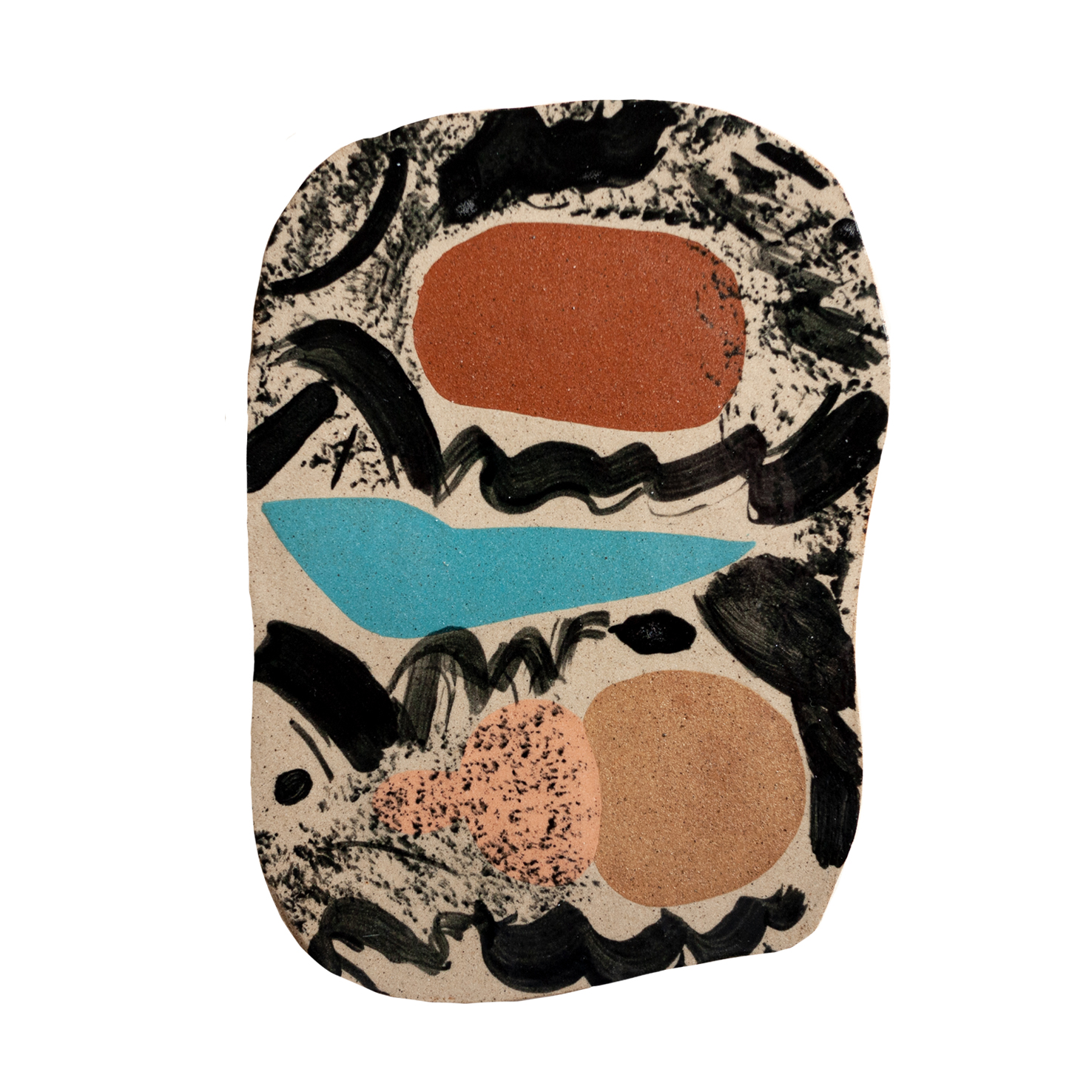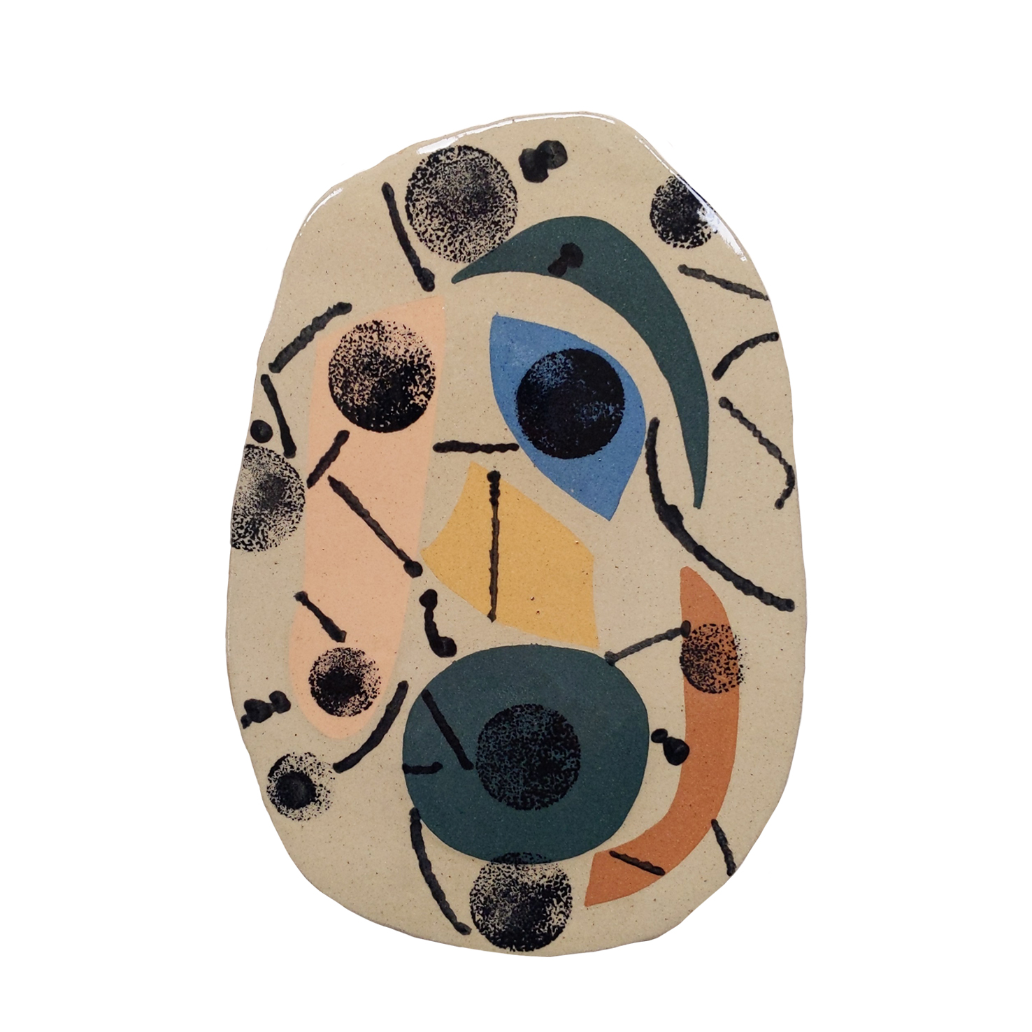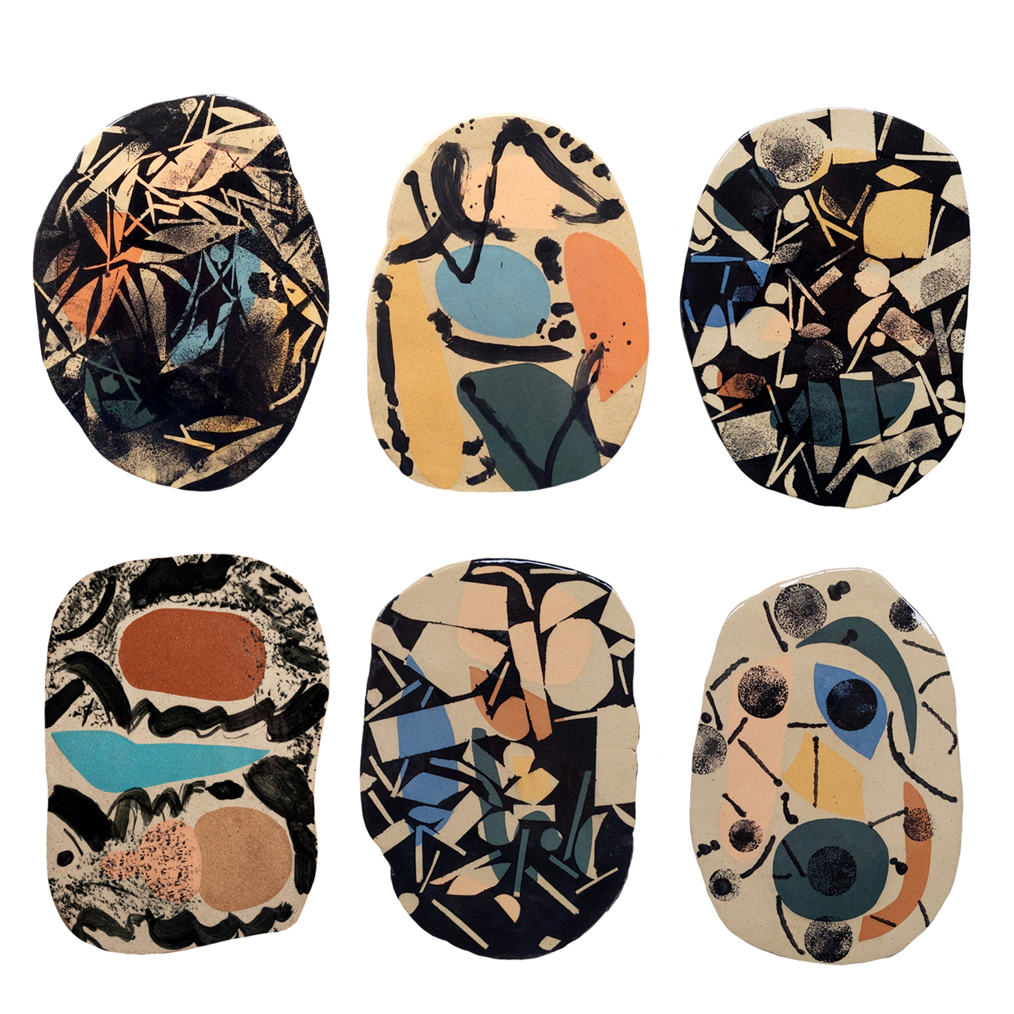 Starting with a series of quick and simple test tiles, these eventually grew into the collaboration proper, the duo continue to treat each tile in an organic experimental way, responding to each others shapes, colours and marks.