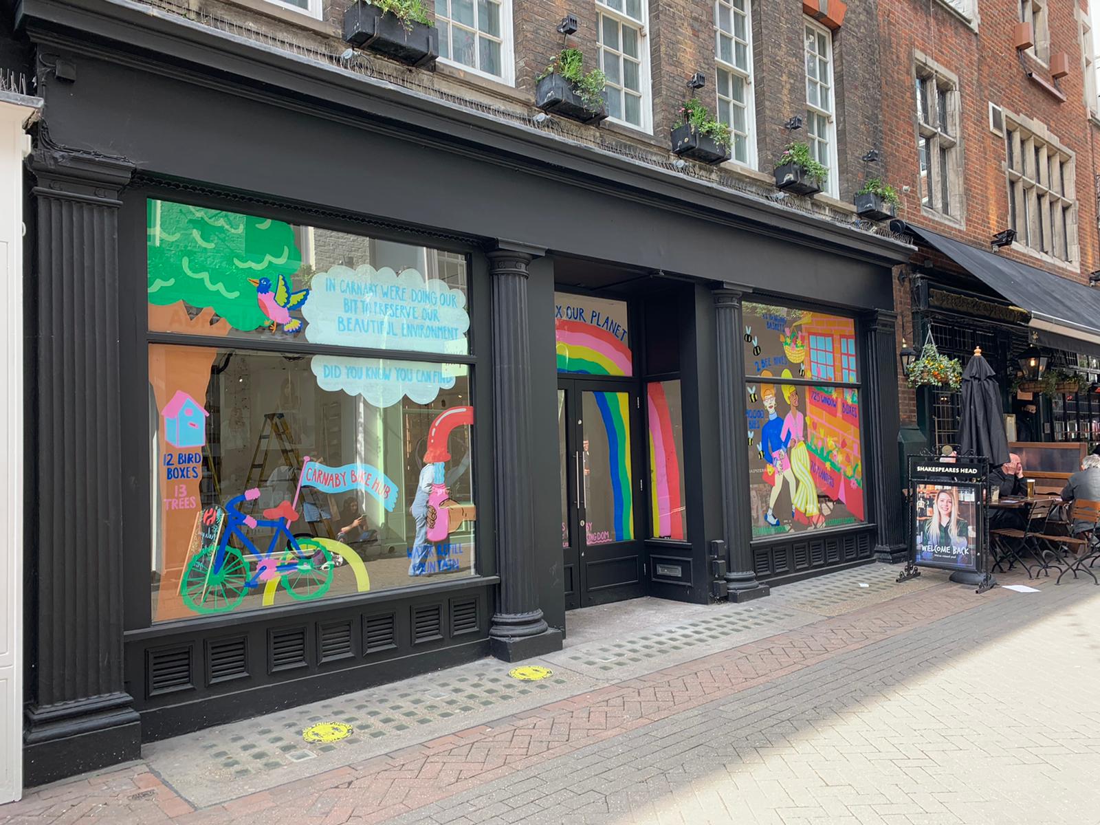 Lizzie King has been commissioned by Sister London & Carnaby to inject a little bit of colour into the windows of Soho as shops start to reopen.