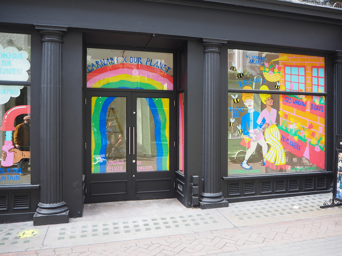 The artwork features Lizzie’s signature vibrant colours, wonderful characters and exudes joy, definitely bringing some good vibes back to the streets as shops reopen.