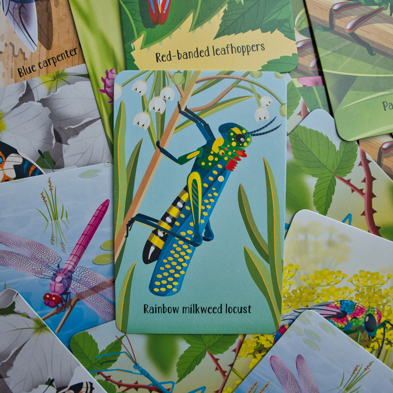 Daniel Long has illustrated a set of interesting insects for snap cards by Usborne. Working from a basic outline provided by the client, Daniel weaved some of his illustrative knowledge of the natural world into each of the cards, tweaking the compositions and poses of the insects to create a dynamic set;