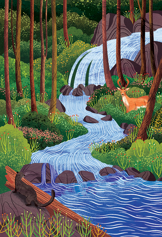 “This was definitely my favourite book in the series to work on! I loved drawing all of the wild landscapes and trying to get as much colour and detail in there as possible. It’s hard to choose my favourite illustration out of the 60 but I’d say I’m especially proud of the image that ended up on the cover – it’s an illustration of the salt marshes at the Wadden Sea and all the different birds that live there.”