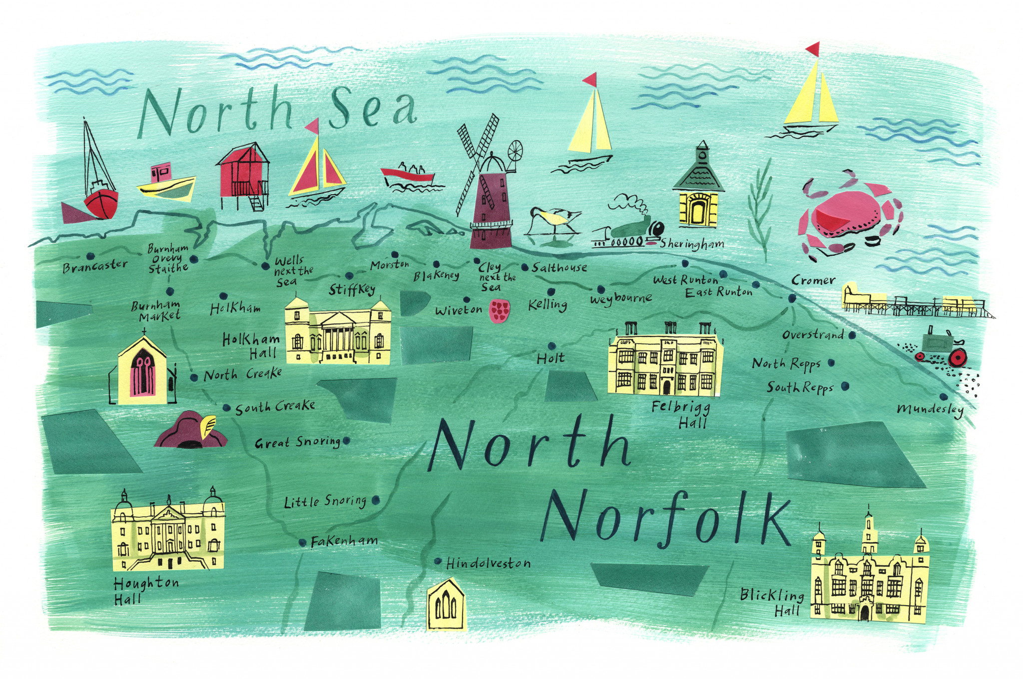 Sarah Mcmenemy has been exhibiting a new series of landscape paintings at The Gallery in Cromer, Norfolk as part of a tenth anniversary group show. The painting’s feature beautiful interpretations of the Norfolk coastline, and Sarah has also illustrated a handy map if you’re in the area!