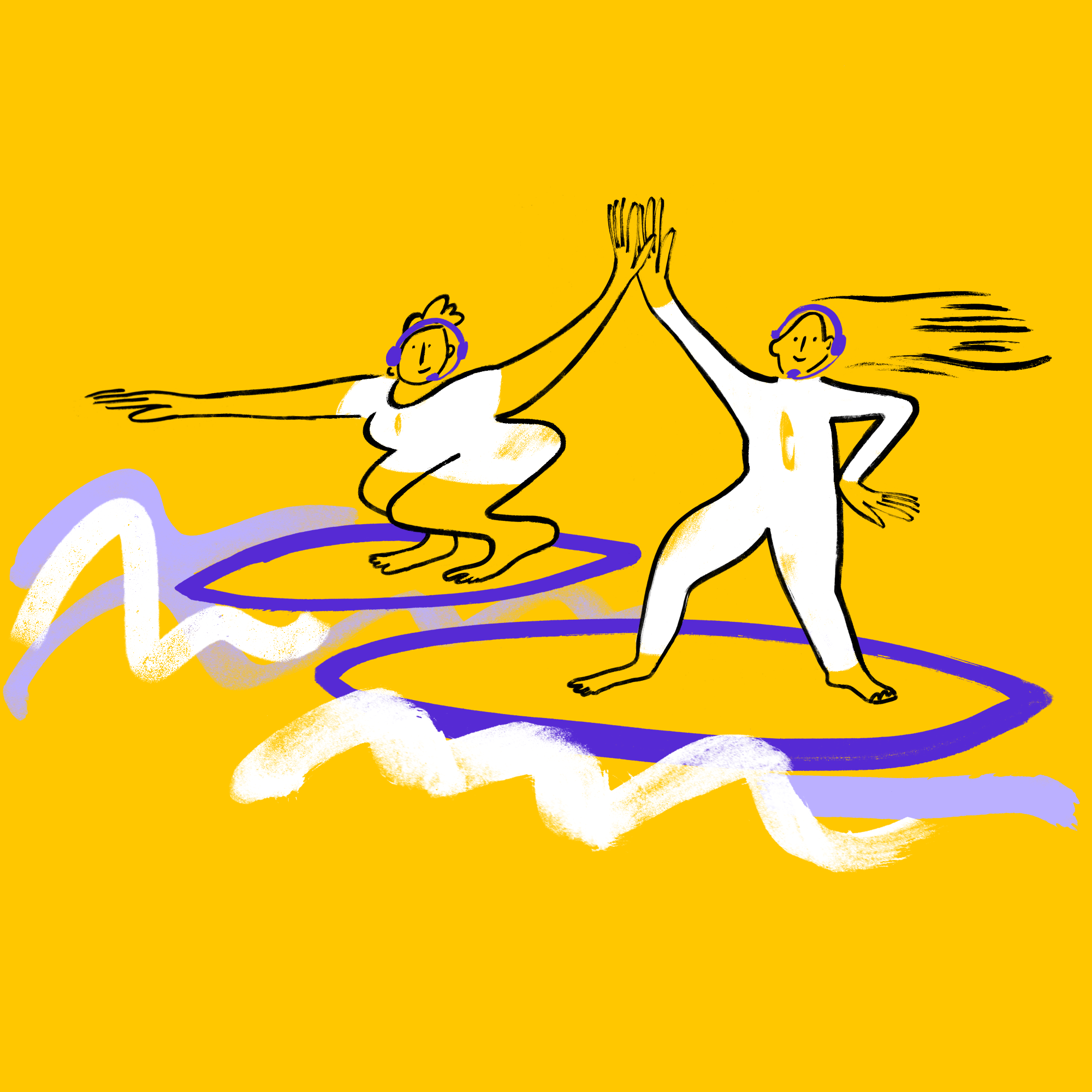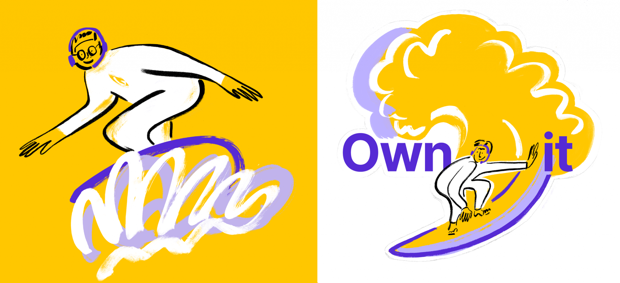 Exploring the term “surfboard” asa tool that helps you ride the waves of inflow and communicate with ease, Aurelia’s illustrations reflect the shifting idea of teamwork in her beautifully expressive line.
