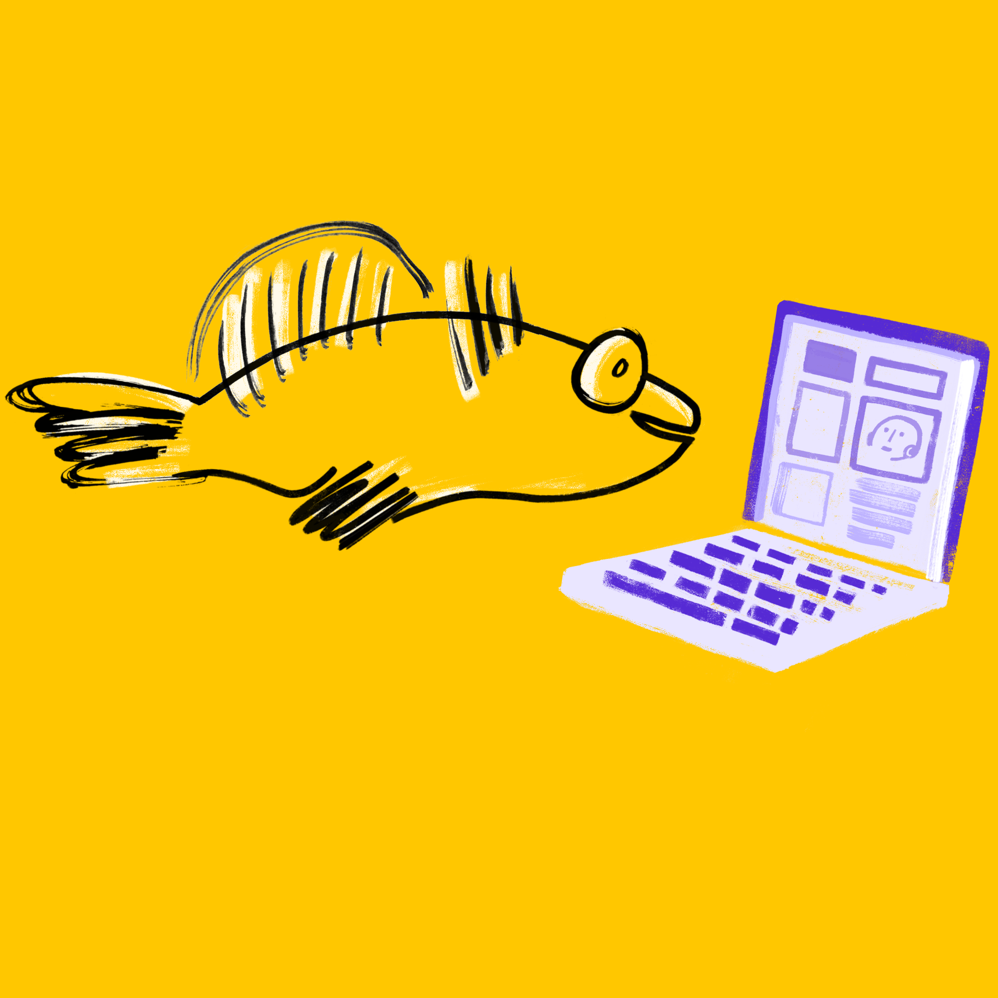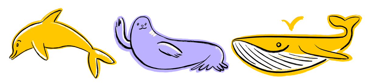 Drawing with ink on paper and digital colouring, Aurelia and the design team at surfboard also explored looking the idea of characters living under the sea representing the customers, featuring tech-savvy fish, whales and crabs, showing how the waters you ride through can vary!