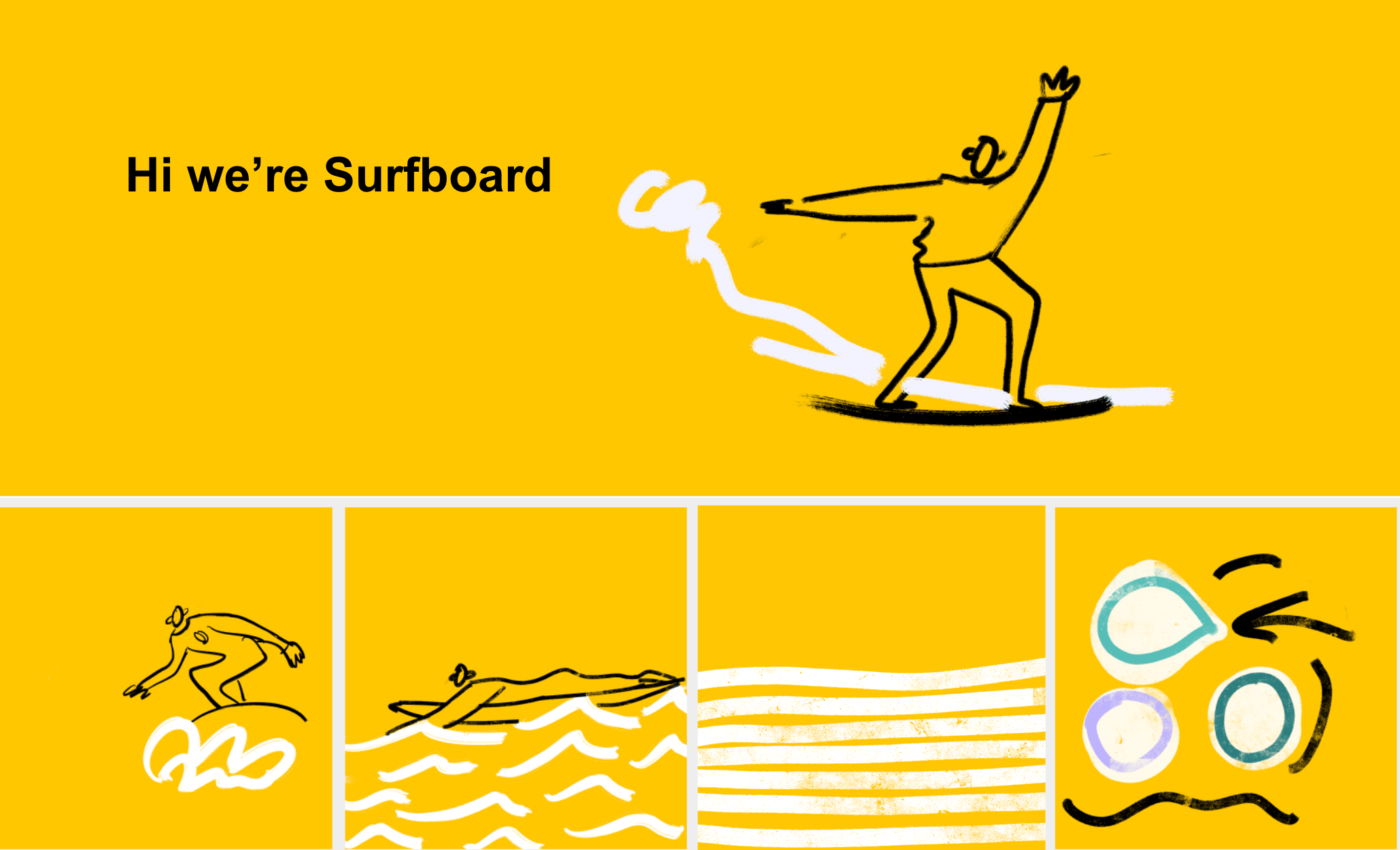 Aurelia Lange was commissioned by Surfboard, a customer service software, to create illustrations for their new website, product, and motivational internal communications; representing the fair team work practice their software provides for people working in the customer facing service industry.