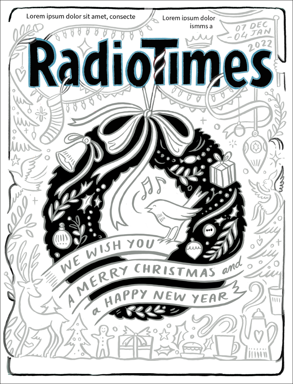 While normally linking the cover to the Christmas TV schedule, the art directors wanted to take a more explicitly festive approach this year, basing the illustration around a central icon like a bauble, snow globe or other Christmas image.