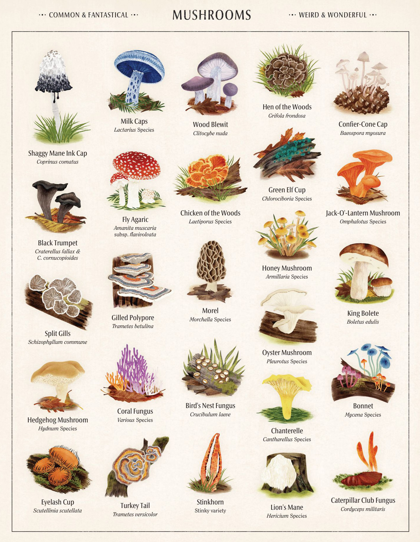 Hannah Bailey has illustrated a mind-blowing range of mushrooms for a new book written by author, fungi advocate and educator Meg Madden and publisher Running Press Adult. The illustrations have also been adapted into a puzzle, poster and mini-kit with magnets.