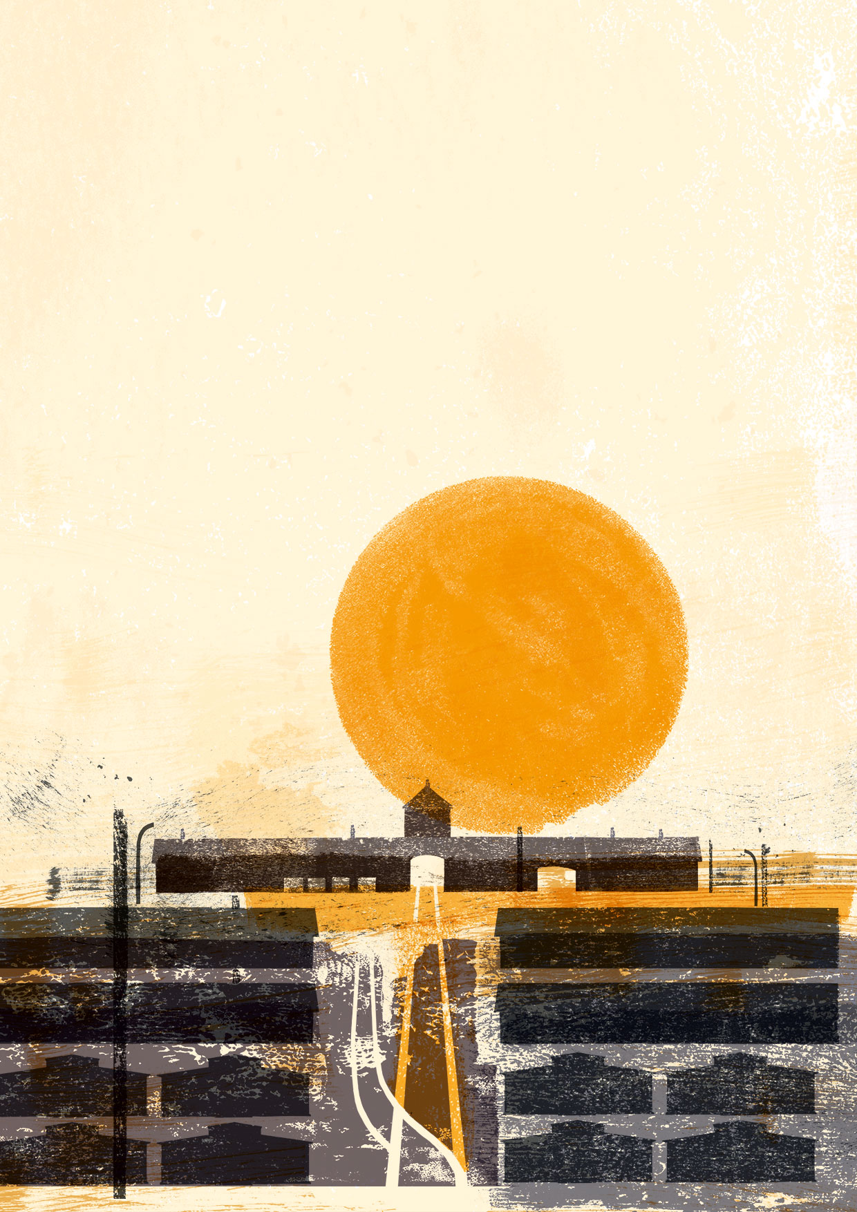 Claire Harrup has illustrated a new cover for Primo Levi’s profound memoir ‘If This is a Man / The Truce’, for publisher Abacus Books 50th anniversary celebrations. Claire’s cover captures the art director Nico’s vision of a bold and graphic image depicting Auschwitz in the foreground, while playing with sunlight tot capture a sense of prevailing hope.