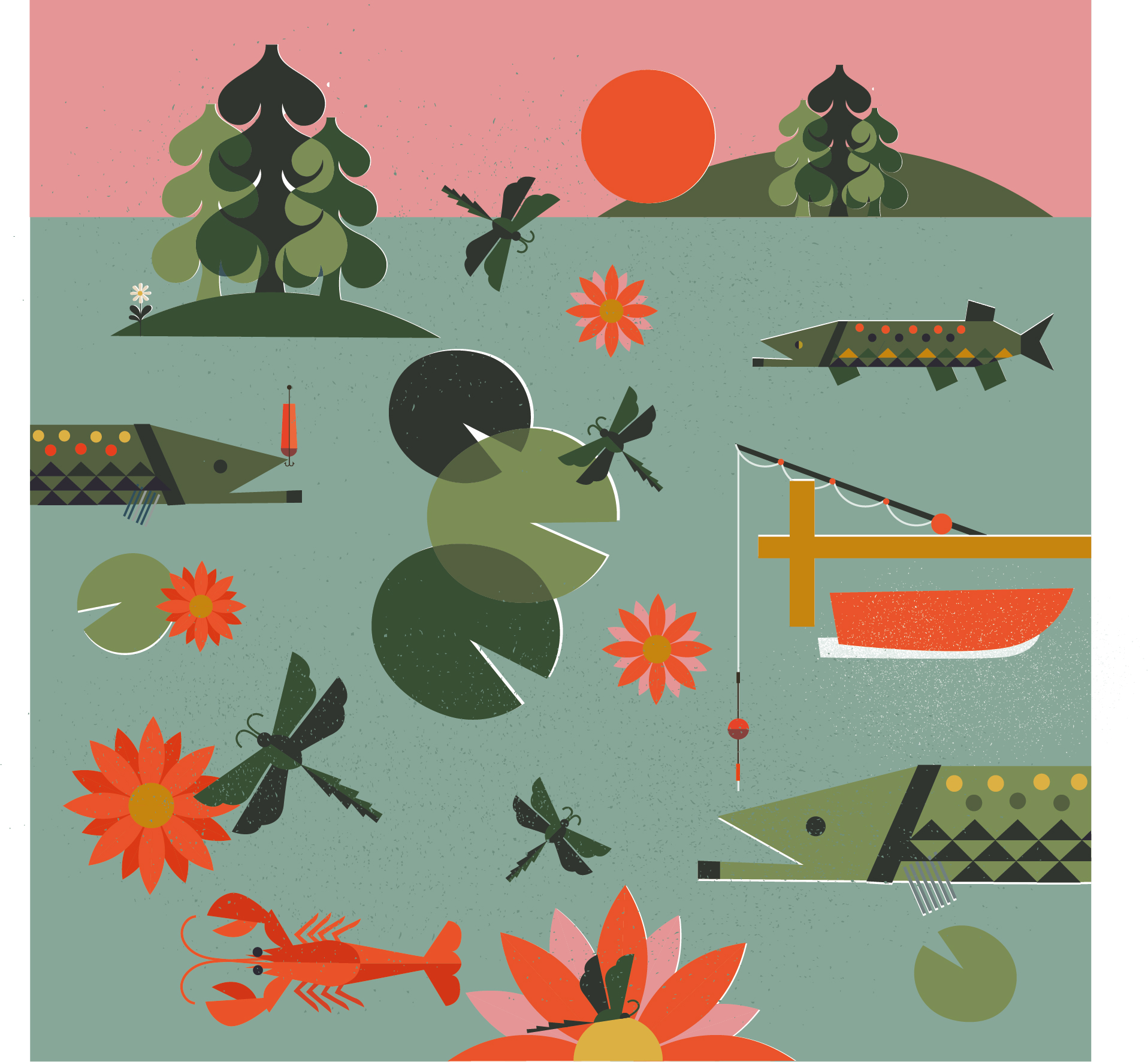 I draw inspiration from my childhood and surroundings, people and travel. We bought a summer house in Sweden a few years ago so a lot of recent work is around lakes and forests as well as Hong Kong from living there for 5 years recently. So I guess it all starts in reality but the outcome is very imaginative, if that makes sense?