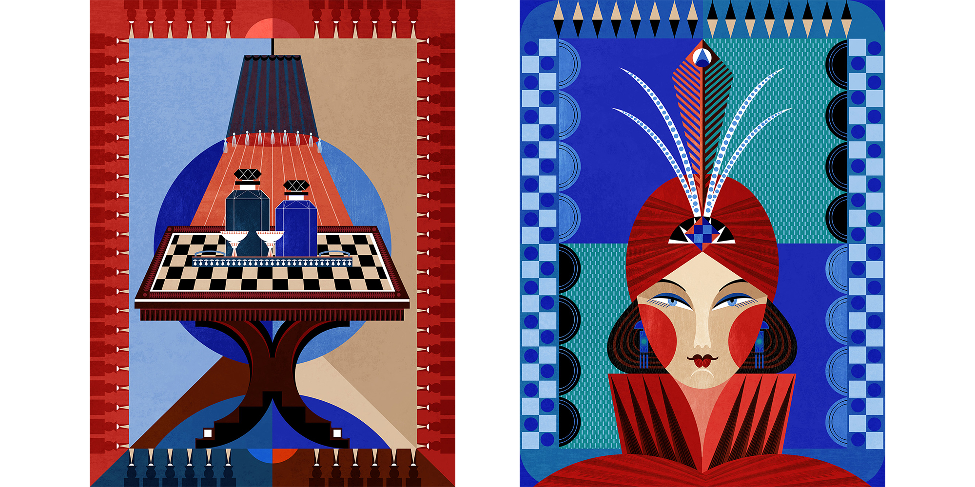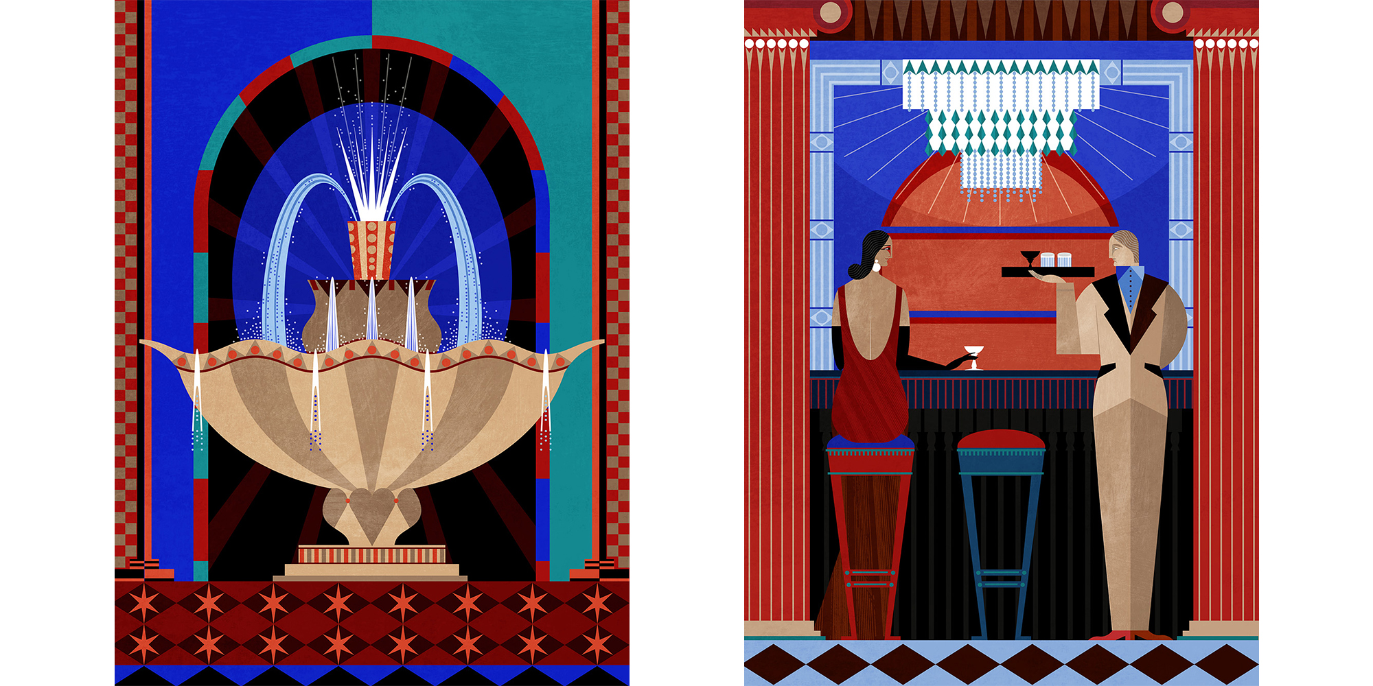 Katie Ponder has been commissioned to create a glamorous series of artworks for the the five-star Beaumont Hotel in Mayfair, London. Drawing inspiration from the elegant art deco interiors of the hotel, Katie kept things colourful and patterned.