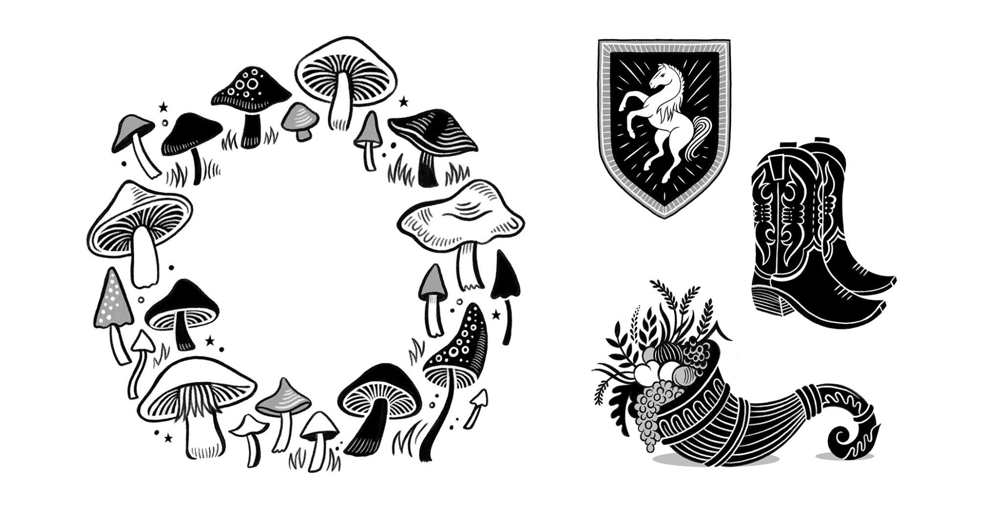 It is actually unusual for me to be commissioned for black and white interiors as colour plays such a big part in my work and identity as an illustrator. But the process of working on these books has really opened up a whole new side to my work, not to mention a wild variety of subjects and creatures I have neever been asked to draw before!