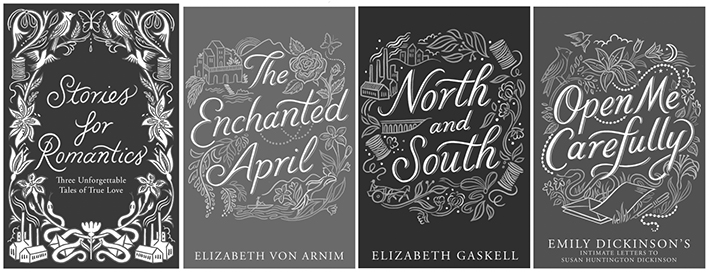 Kate Forrester was approached by US publishers, Chronicle Books, to design a boxed set of 3 classic novels as a collection of ‘Stories for Romantics.’
