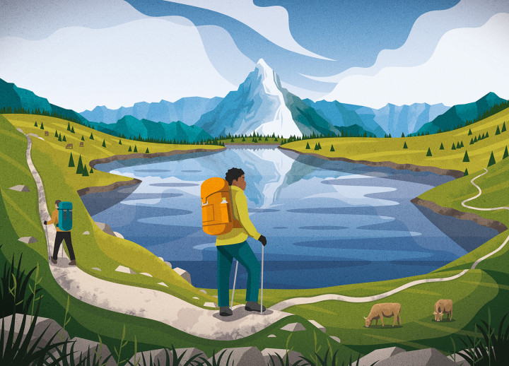 Daniel’s work is heavily influenced by mid century design, architecture and fashion which can be easily seen in his use of colour palettes and choice of subject matter.