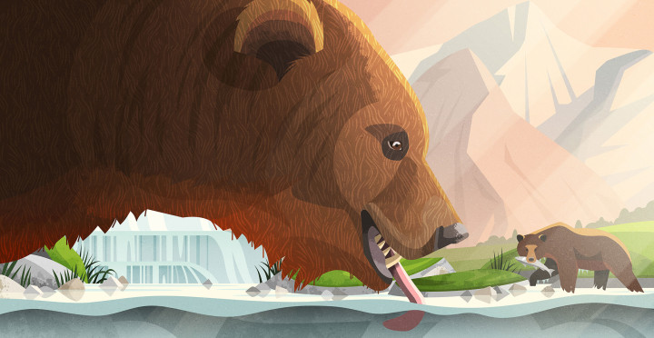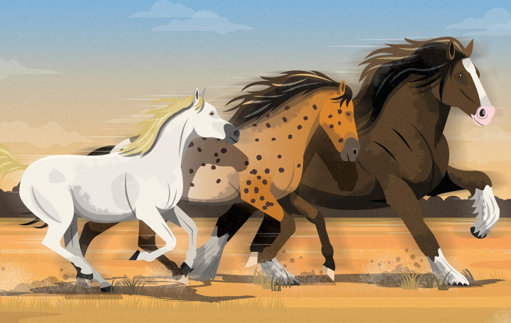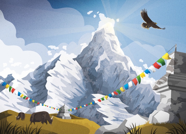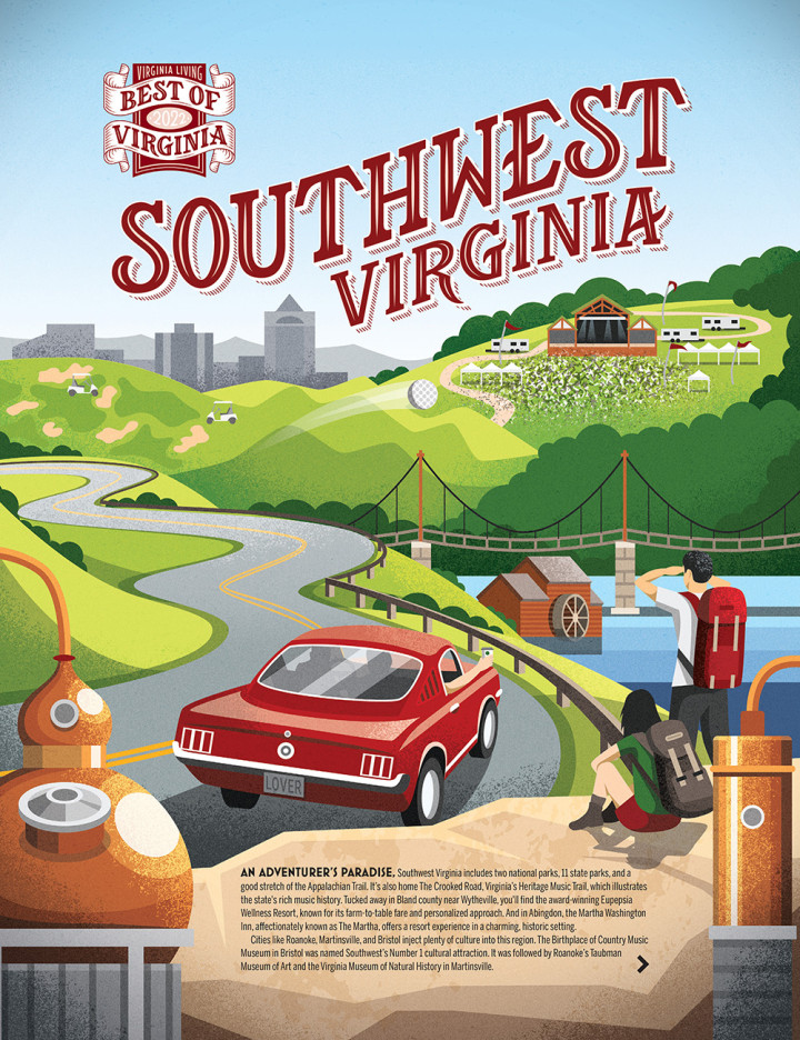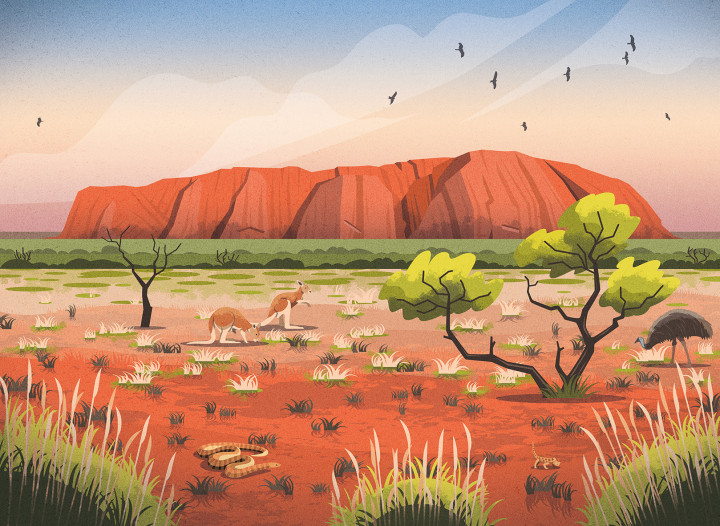 His work is all created digitally in Photoshop and Illustrator using vectors. He often adds lots of textures and shading to add depth and intensity to an illustration.